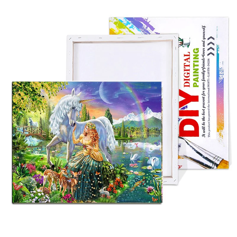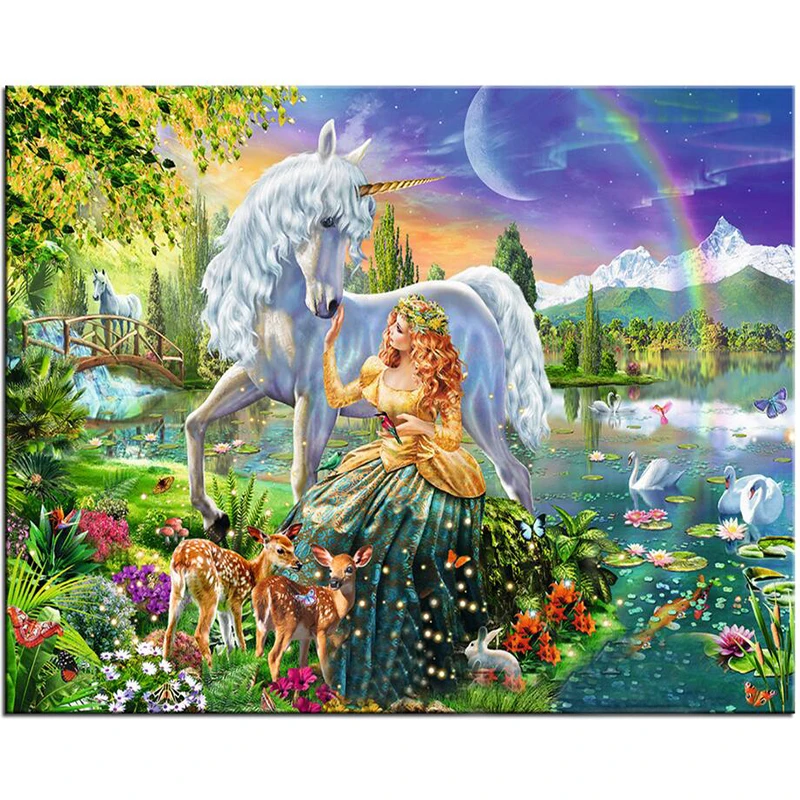 Картина по номерам на холсте с изображением единорога и девушки, масляная раскраска для рисования, для украшения гостиной