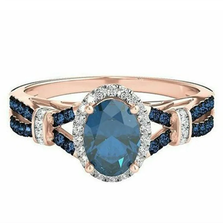 Новое Стильное женское легкое роскошное кольцо из розового золота с инкрустированным натуральным морским синим цирконием для помолвки подходит для вечерние Ринок и свадеб.