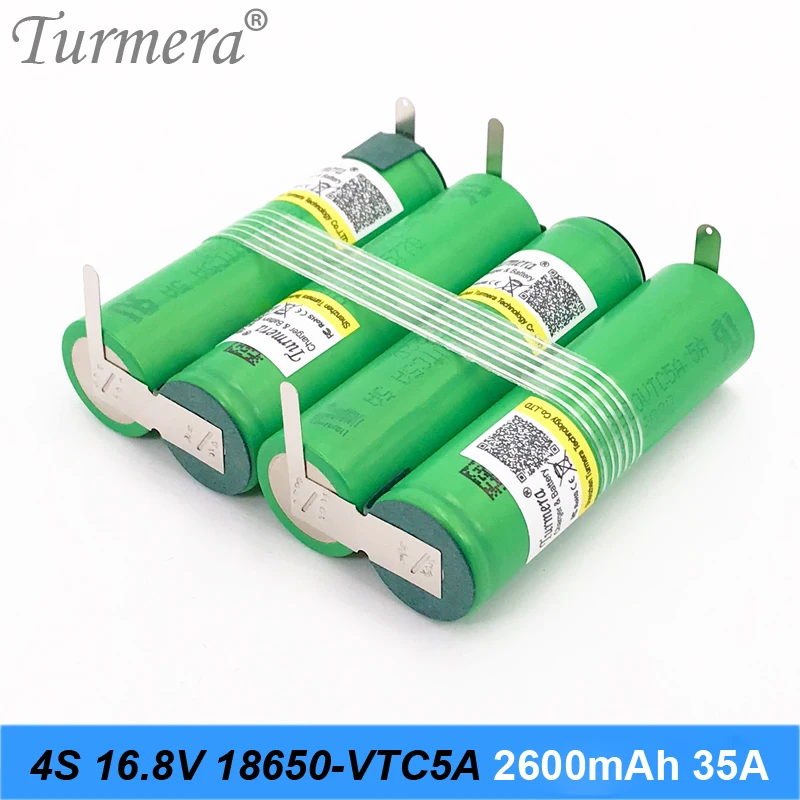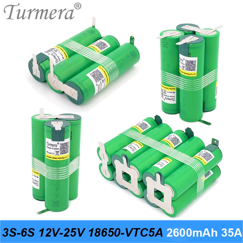 Аккумулятор Turmera 3S, 12 В, 4S, 16,8 в, 5S, 21 в, 6S, 25 в, VTC5A, US18650VTC5A, 2600 мАч, для отвертки 18 в
