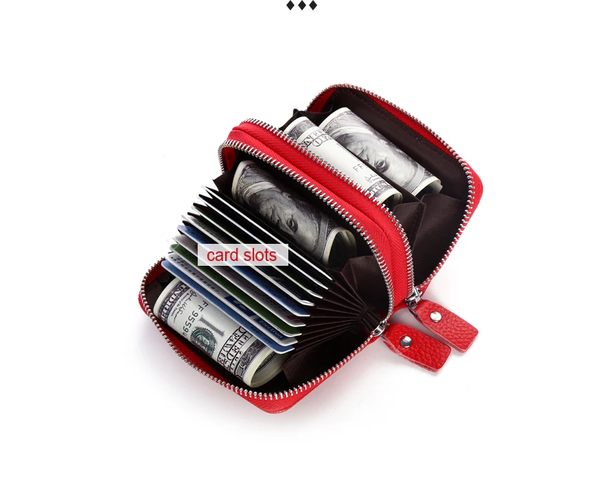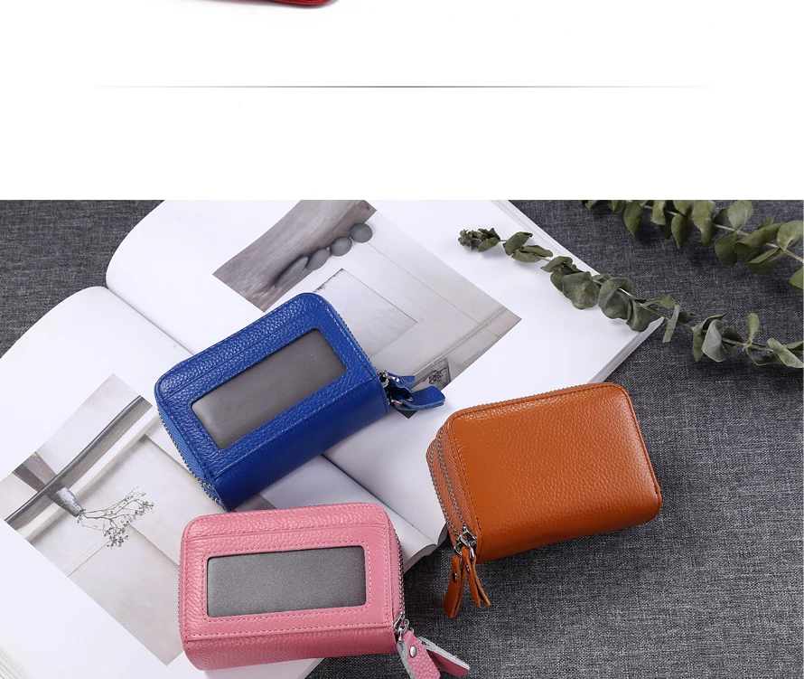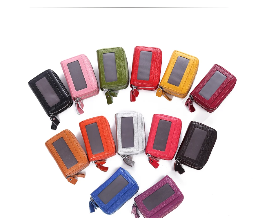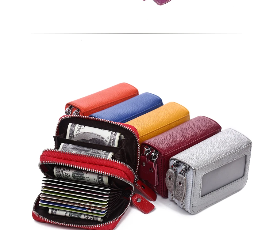 Модная женская кредитница из натуральной кожи, двойная молния, вместительный женский чехол для удостоверения личности и кредитных карт, кошелек