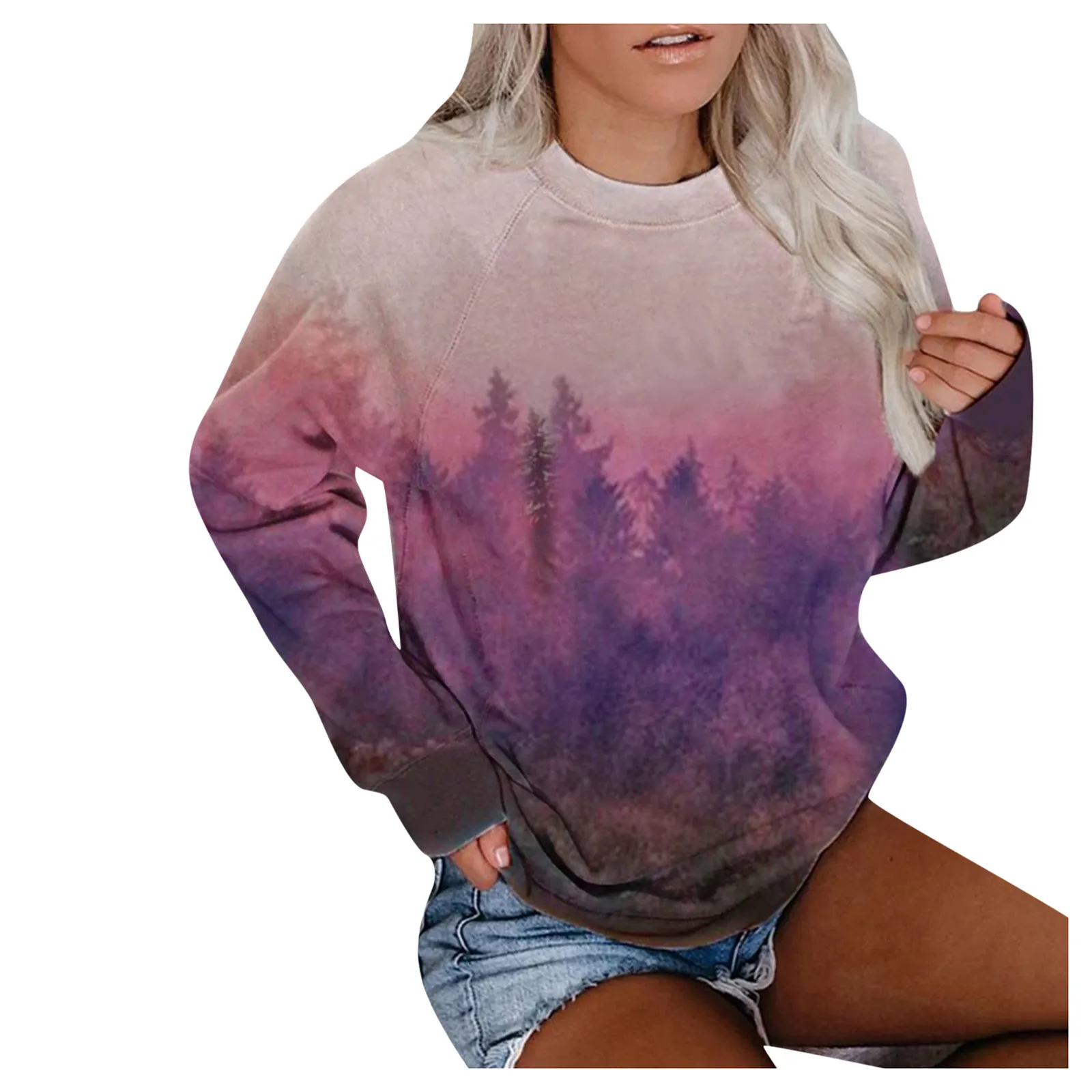 Номер моделиWomen Plus Size Mountain Printed Pullover Long Sleeve Sweatshirt Shirt