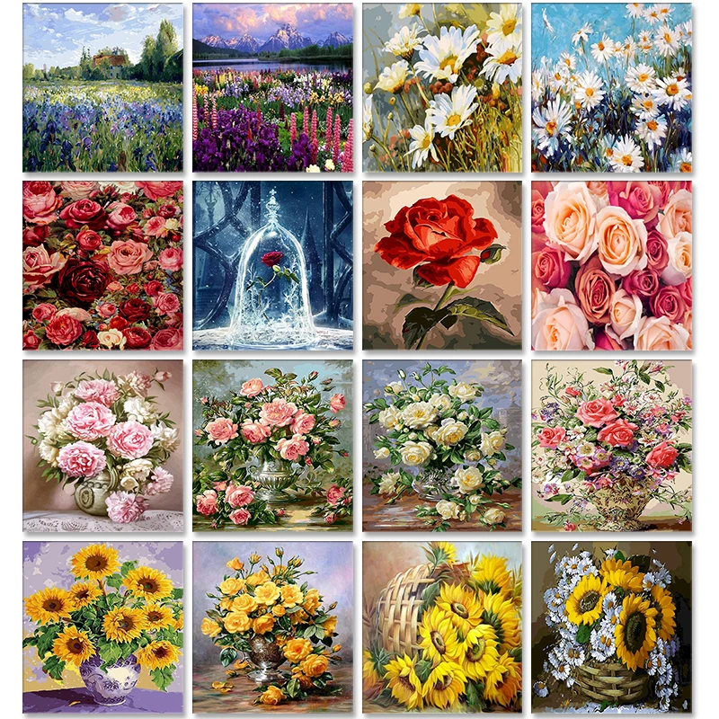 Картина маслом по номерам Цветок на холсте с рамкой ручной работы Рисование краски для взрослых Раскраска по номерам картина домашний декор искусство undefined Подсказка Цифровой Инструмент Красочная Ручная Роспись Сте