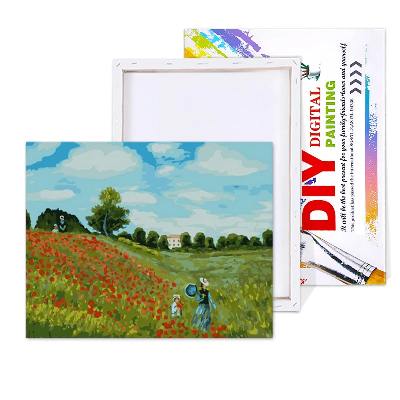 1 Набор готовой рамы (льняной холст растягивается на раме) 1 набор акриловой краски, 3 * нейлоновые кисти, вешалки, pdf справки, руководство по цвету, посылка: коробка