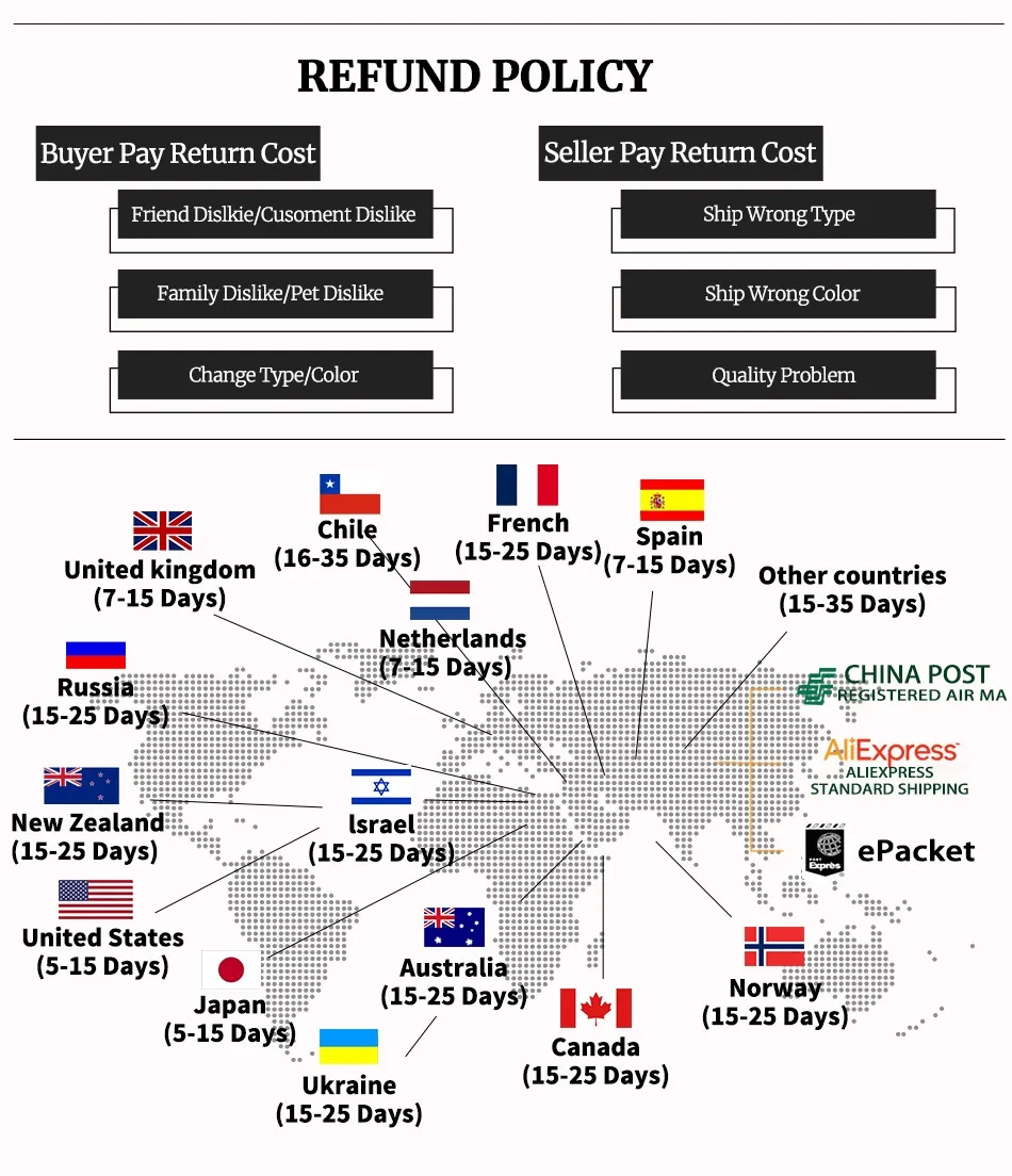 Высокое качество услуг:Если есть какие-либо проблемы с заказом, такие как Задержка доставки или поврежденные товары, пожалуйста, свяжитесь с нами, мы решим проблемы!