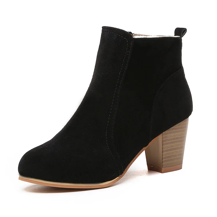 Размера плюс Женские ботильоны обувь, мягкое покрытие флок, однотонный цвет, острый носок; Офисные туфли на высоком каблуке зимние ботинки на высоких каблуках с застежкой повседневная женская обувь женские туфли-лодочки; Размеры 35-41