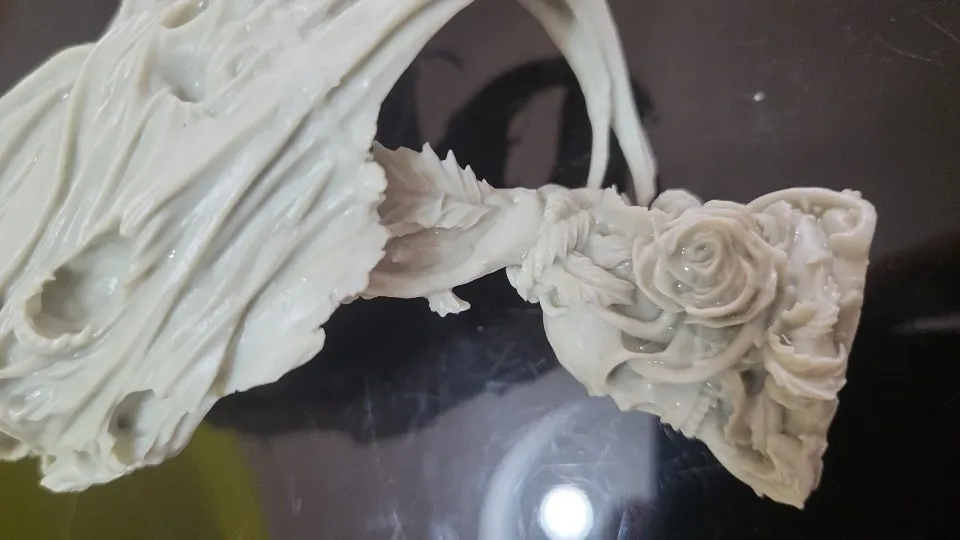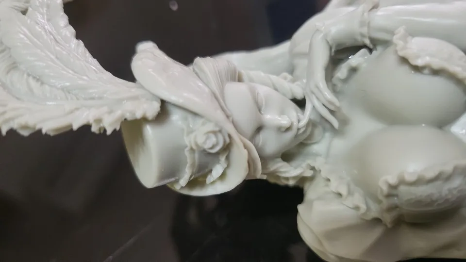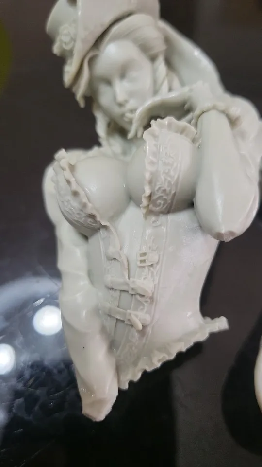 Не достаточно точное литьё и посредственная стыкуемость шлейфа и базы. Но лицо и непосредственно бюст отлиты хорошо.