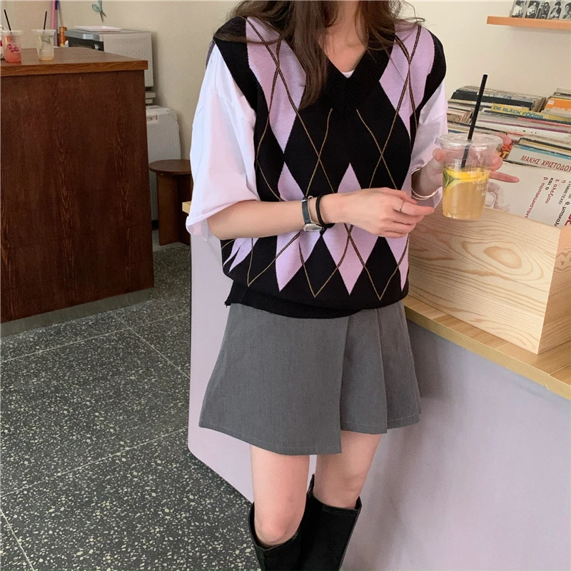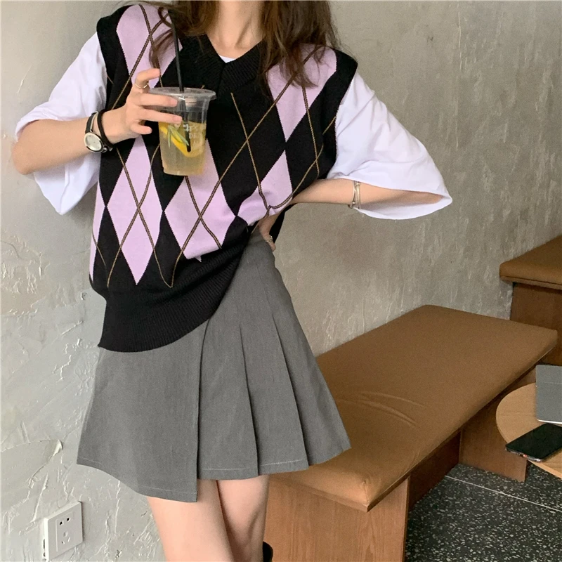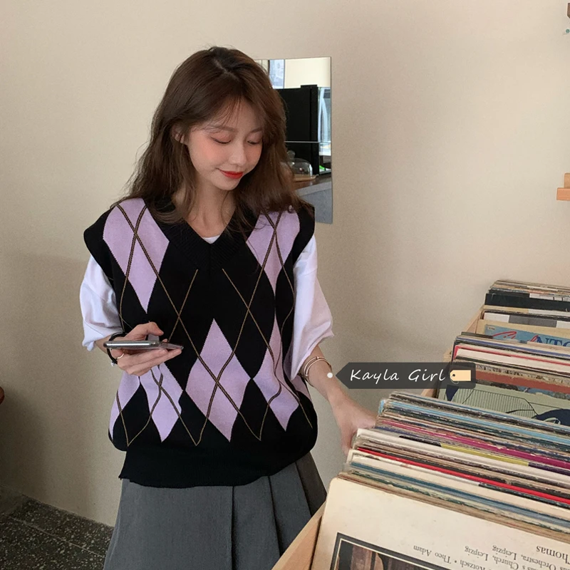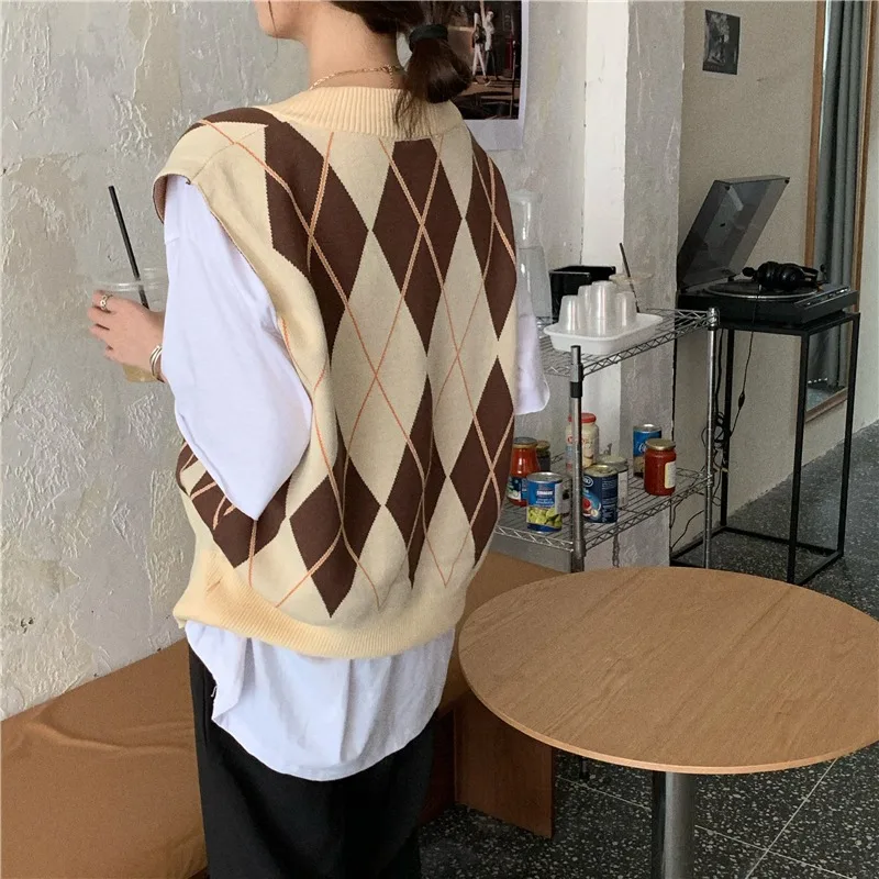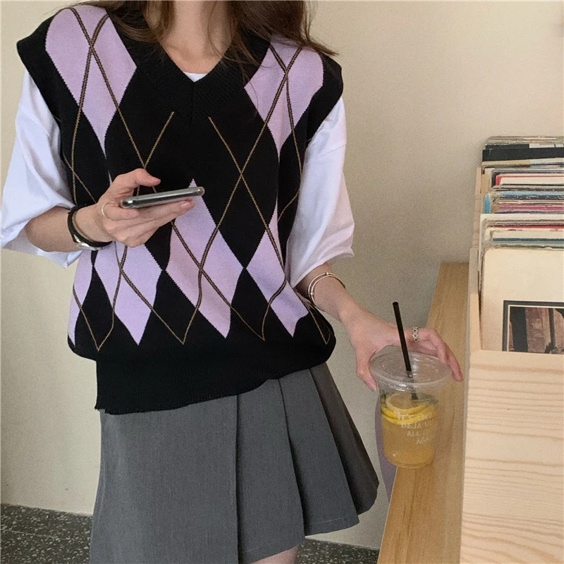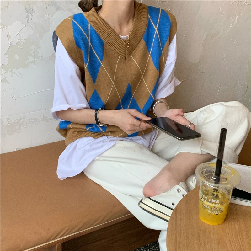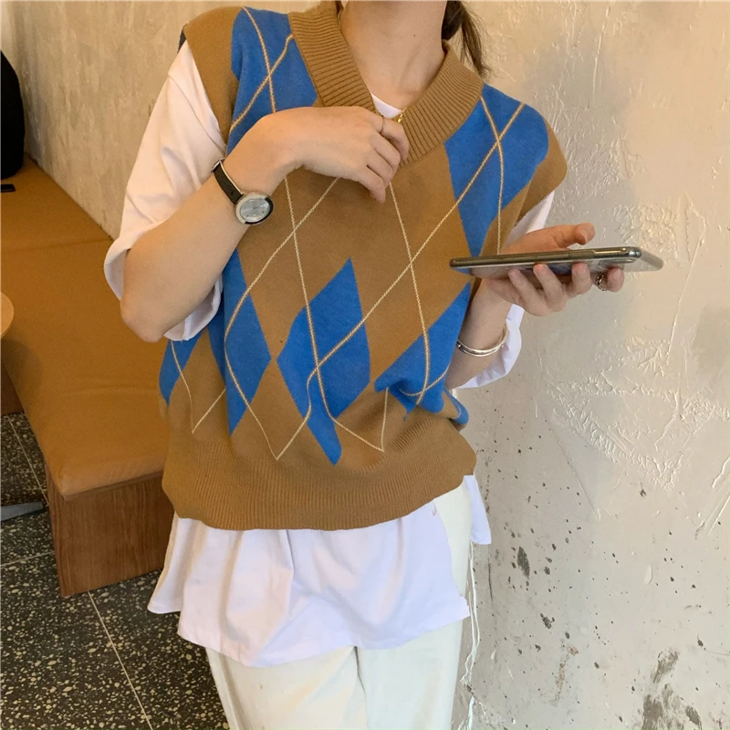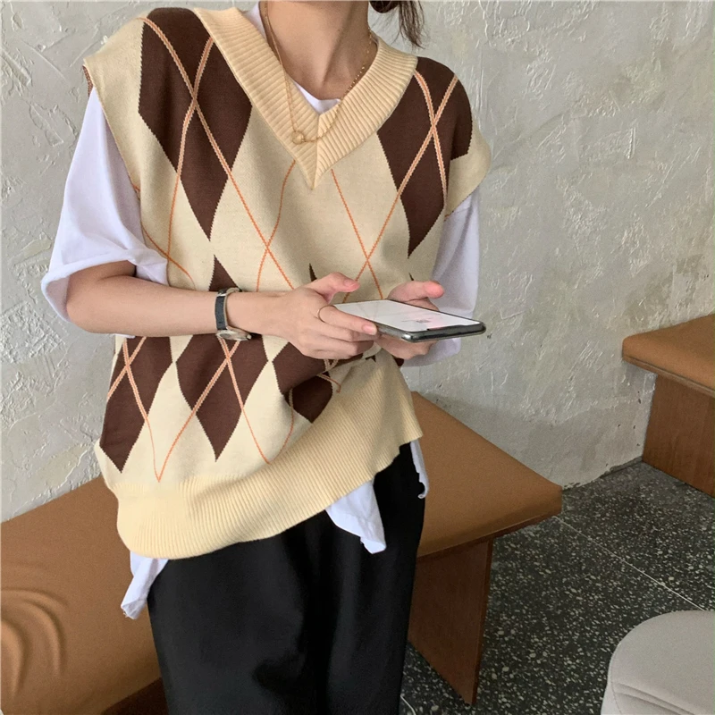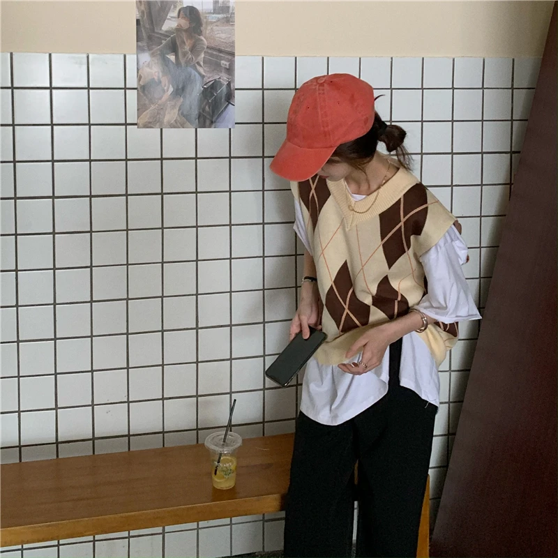 Жилет женский трикотажный в клетку, без рукавов, с v-образным вырезом, на осень и зиму, 3 вида цветов