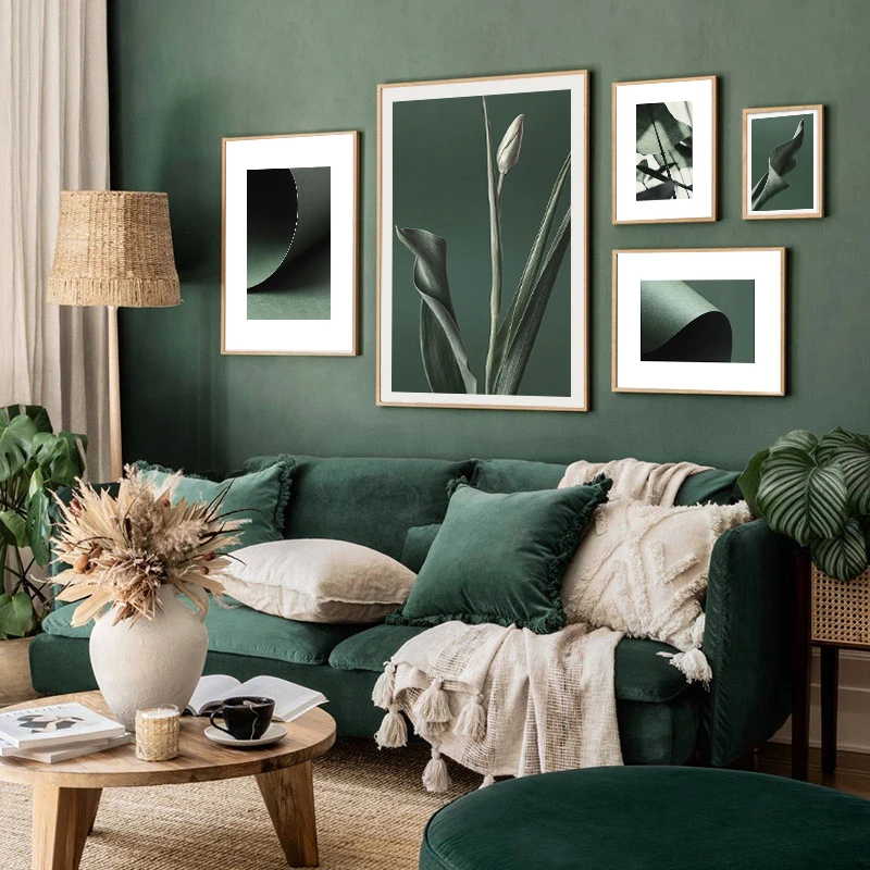 Современный домашний декор, Настенная картина с зелеными растениями и листьями, печать на холсте, Постер в скандинавском стиле, абстрактная картина, декор комнаты