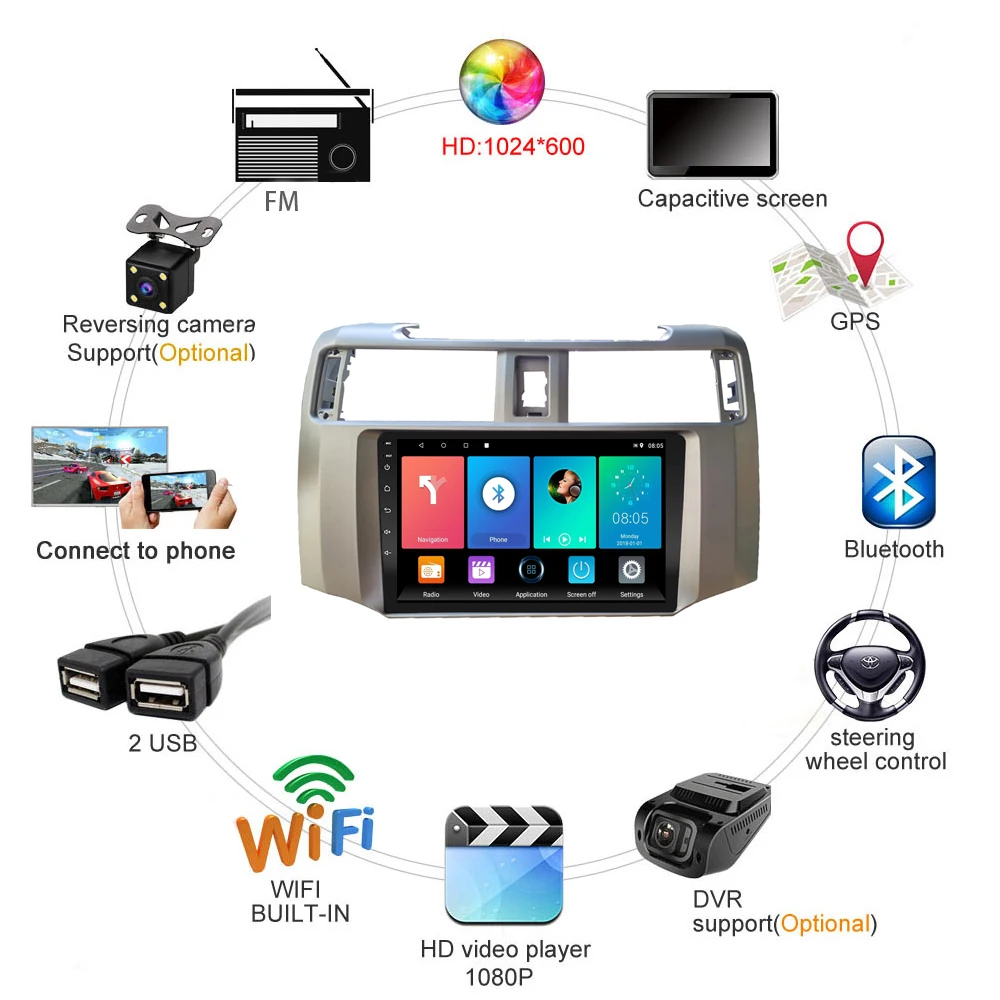 2 Din 9 дюймов автомобильное радио Мультимедиа Android 8,1 видео плеер навигация GPS для Toyota 4runner 4runner 2009-2019