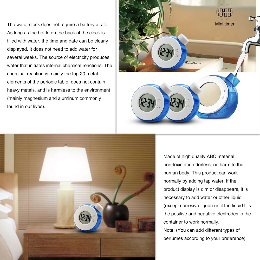 Креативные Круглые Часы с водным питанием для детей, подарки, умные часы с водным элементом, бесшумные цифровые часы с календарем, украшение для дома