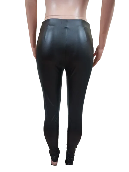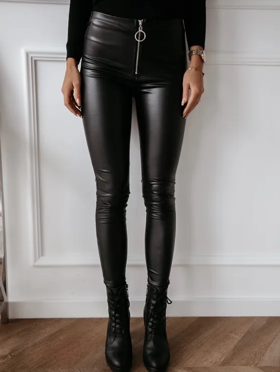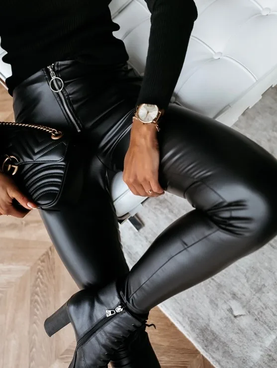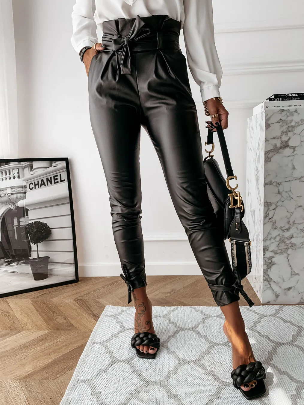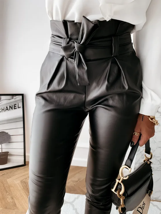 Брюки-карандаш женские из искусственной кожи, с высокой талией и поясом