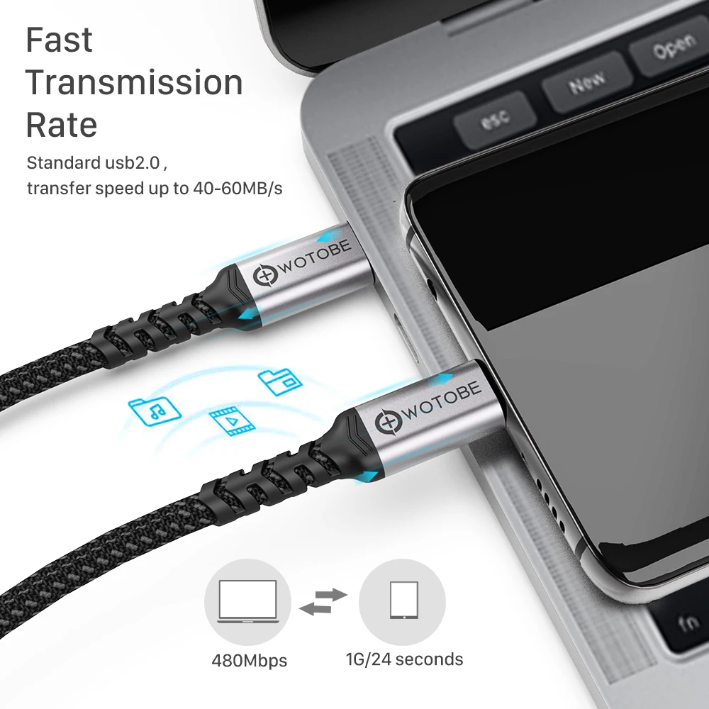 Кабель WOTOBE usb-cUSB Type-C, 3 м, 100 Вт, 10 футов, 5 А, В нейлоновой оплетке, для быстрой зарядки, совместим с MacBook Pro, iPad