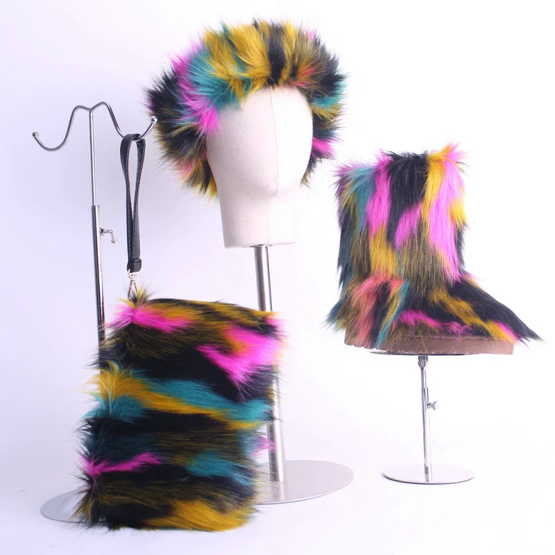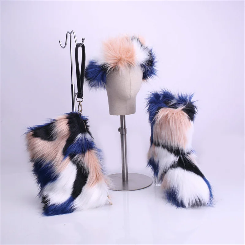 Женские меховые сапоги SWONCO, зимние сапоги с сумочкой и повязкой ...