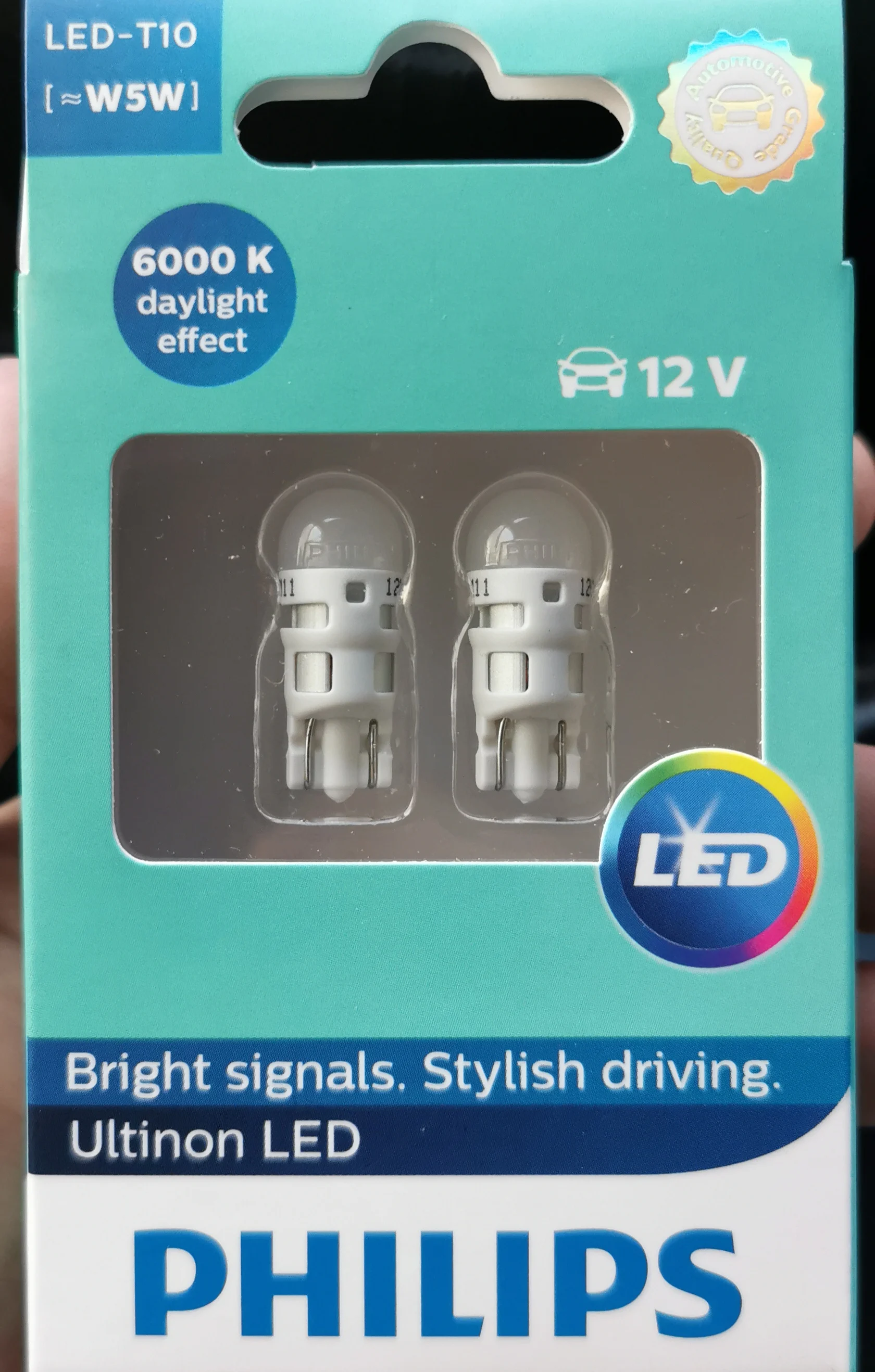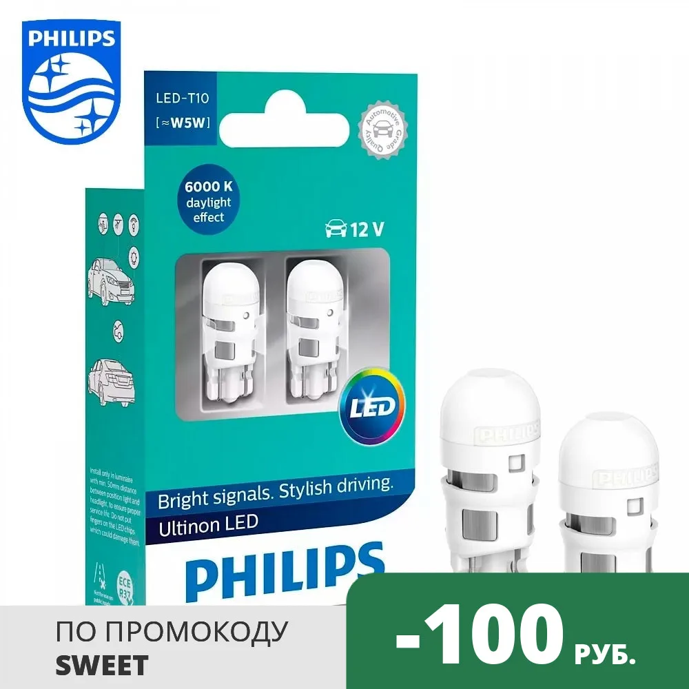 Светодиодные лампы Philips W5W T10 (W2,1x9,5d) Ultinon LED 6000K (2 шт.) 11961ULWX2