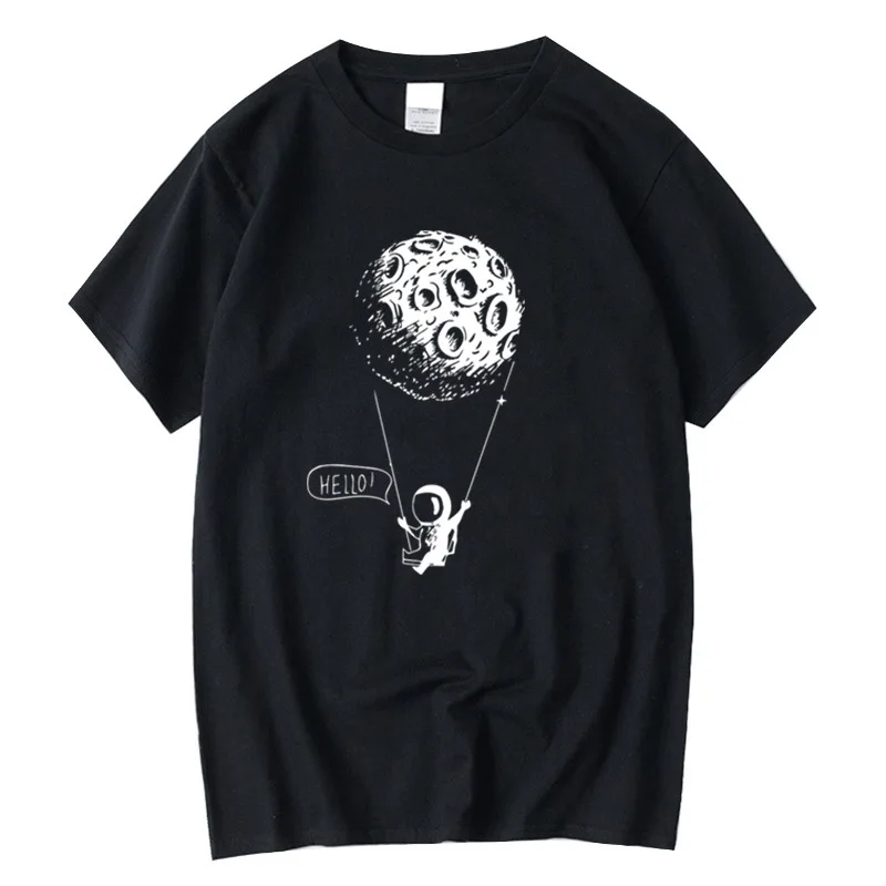 Футболка XIN YI мужская с забавным космическим принтом, тенниска из 100% хлопка, Повседневная Свободная майка с круглым вырезом
