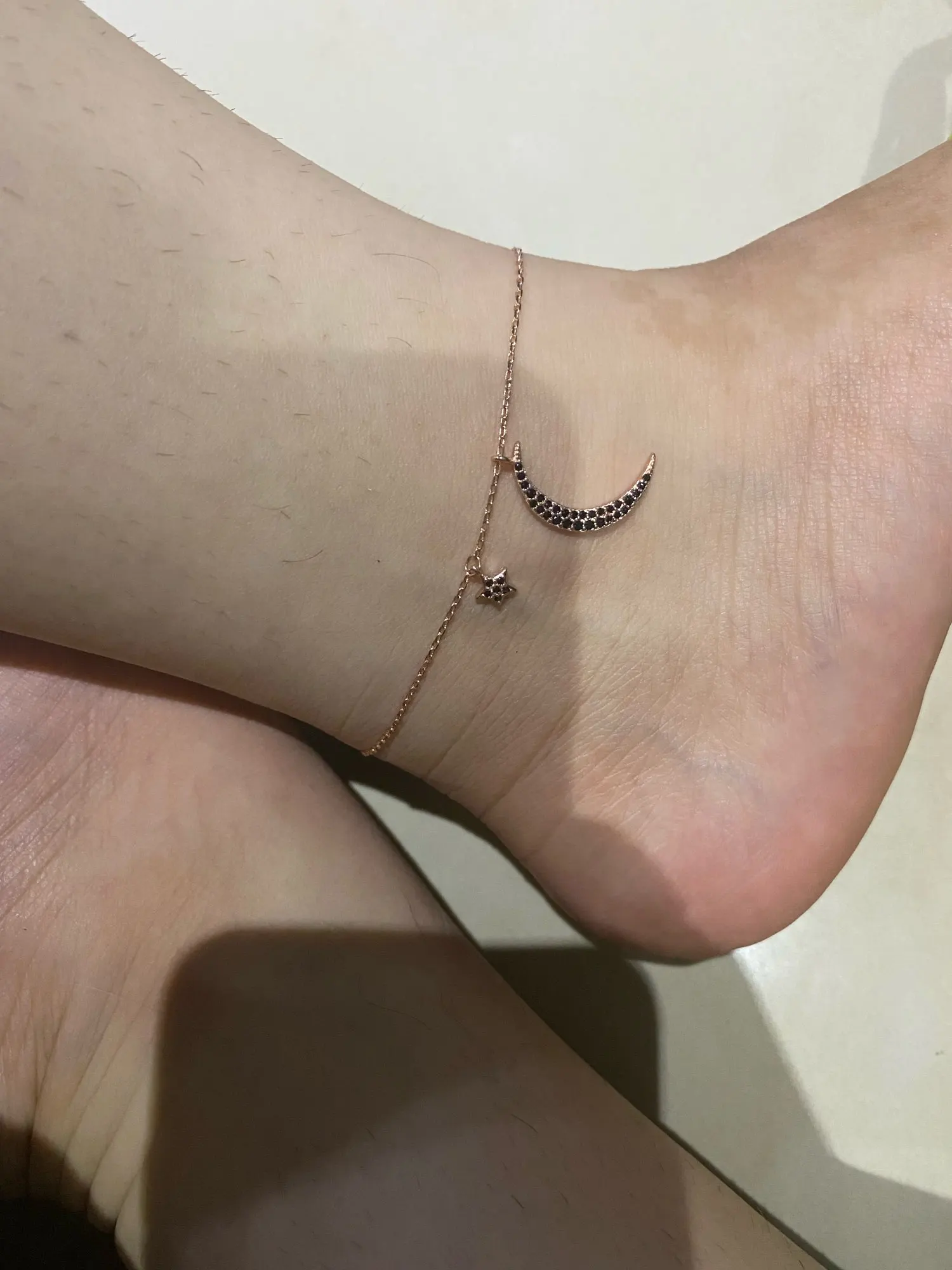 Мода 925 серебро черный кристалл звезда луна кулон звено цепи ножной браслет вечерние ювелирные изделия для женщин вечерние ювелирные изделия sl201