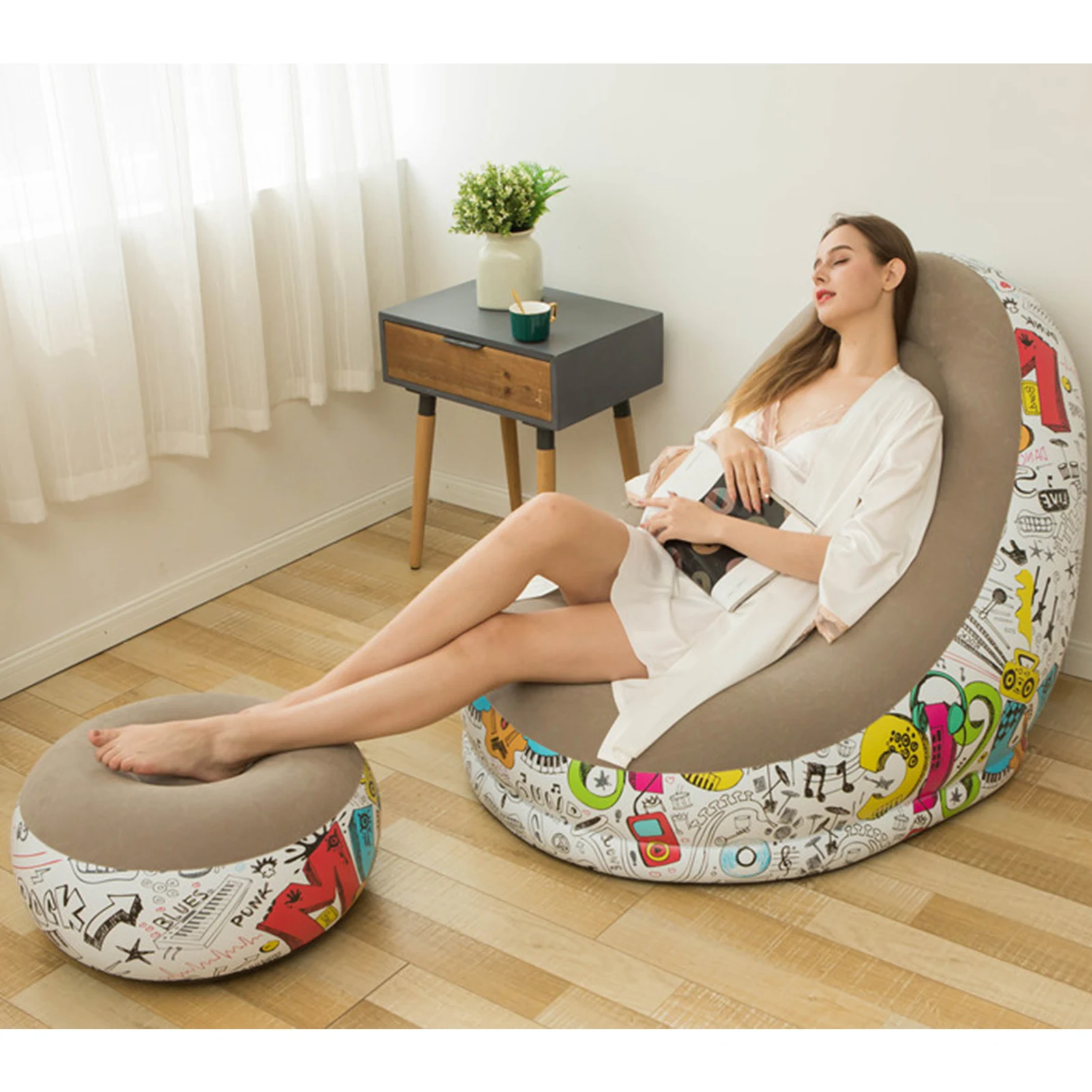 Портативный надувной диван-стул для отдыха с подставкой для ног, уличная мебель