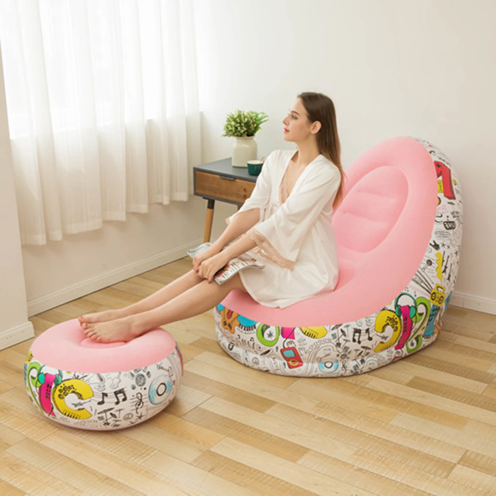 Портативный надувной диван-стул для отдыха с подставкой для ног, табурет, уличная мебель Характеристики: Этот продукт разработан согласно эргономике, что может поддержать ваше тело и позволить вам комфортно сидеть. Легко надувать, это займет всего несколько минут в соответствии с простыми этапами выполнения. Этот надувной диван изготовлен из материалов премиум-класса, который очень мягкий для сидения, сна и отдыха. Более того, он подходит для наружного и внутреннего использования, а также может использоваться в качестве украшения дома. Меры предосторожности: Не надувайте и не спешите в газ высокого давления. Избегайте прыжков на надувном изделии или Избегайте размещения надувного изделия рядом с пламенем или высокотемпературными предметами Если он не используется в течение длительного времени, его следует сложить и поместить в ровное и темное место во избежание чрезмерного трения и острых предметов Естественная утечка воздуха надувных изделий является нормальной Название товара: надувной диван Материал: ПВХ, флокирование Подходит для людей: взрослых Применимые сценарии: использование на открытом воздухе и в помещении, кемпинг, туризм, Пляжное плавание, барбекю на открытом воздухе, парки, задние дворы Особенности: мягкий на ощупь, хорошее украшение, легко надувать, портативный Размер игрушки: 25 см x 23 см x 10 см/9,84 дюйма x 9,06 дюйма x 3,94 дюйма (прибл.) Размер надутого дивана: 116 см x 98 см x 83 см/45,7 дюйма x 38,6 дюйма x 32,7 дюйма (прибл.), надувной круглый стул: 62 см x 62 см x 31 см/24,4 дюйма x 24,4 дюйма x 12,2 дюйма (прибл.) Примечания: Из-за разницы в освещении и настройках экрана цвет товара может сильно отличаться от изображений. Замеры сделаны вручную, поэтому возможны незначительные отклонения в размерах. Посылка входит: 1 надувной диван 1 стул