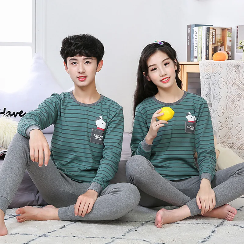 Новинка, осенняя Пижама для мальчиков и девочек, детская одежда с длинным рукавом, одежда для сна для подростков, хлопковые Пижамные комплекты для детей 8, 10, 12, 16 лет