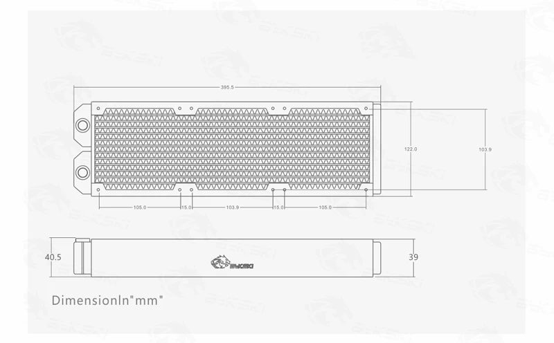 Радиатор Bykski медный, толщиной 360 мм, для вентиляторов 3 х12 см, толщина 38 мм