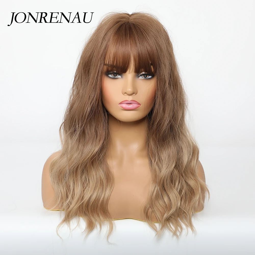 JONRENAU, Длинные Синтетические волнистые коричневые корни, Платино...