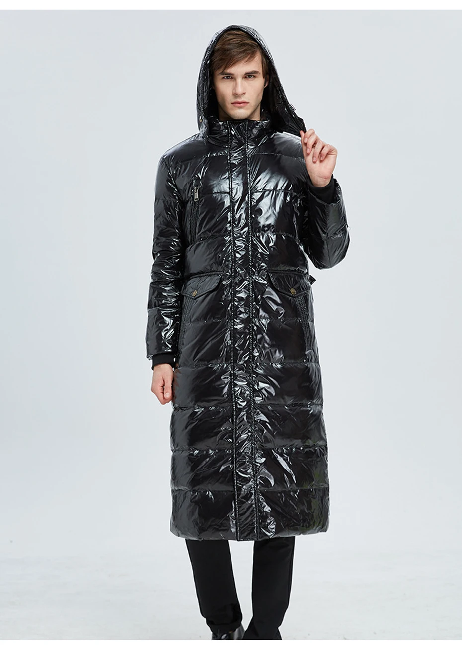 Длинное мужское пуховое пальто, размеры до 5XL, зимняя удлиненная мужская куртка с капюшоном, Мужская парка с капюшоном, длинный пухов
