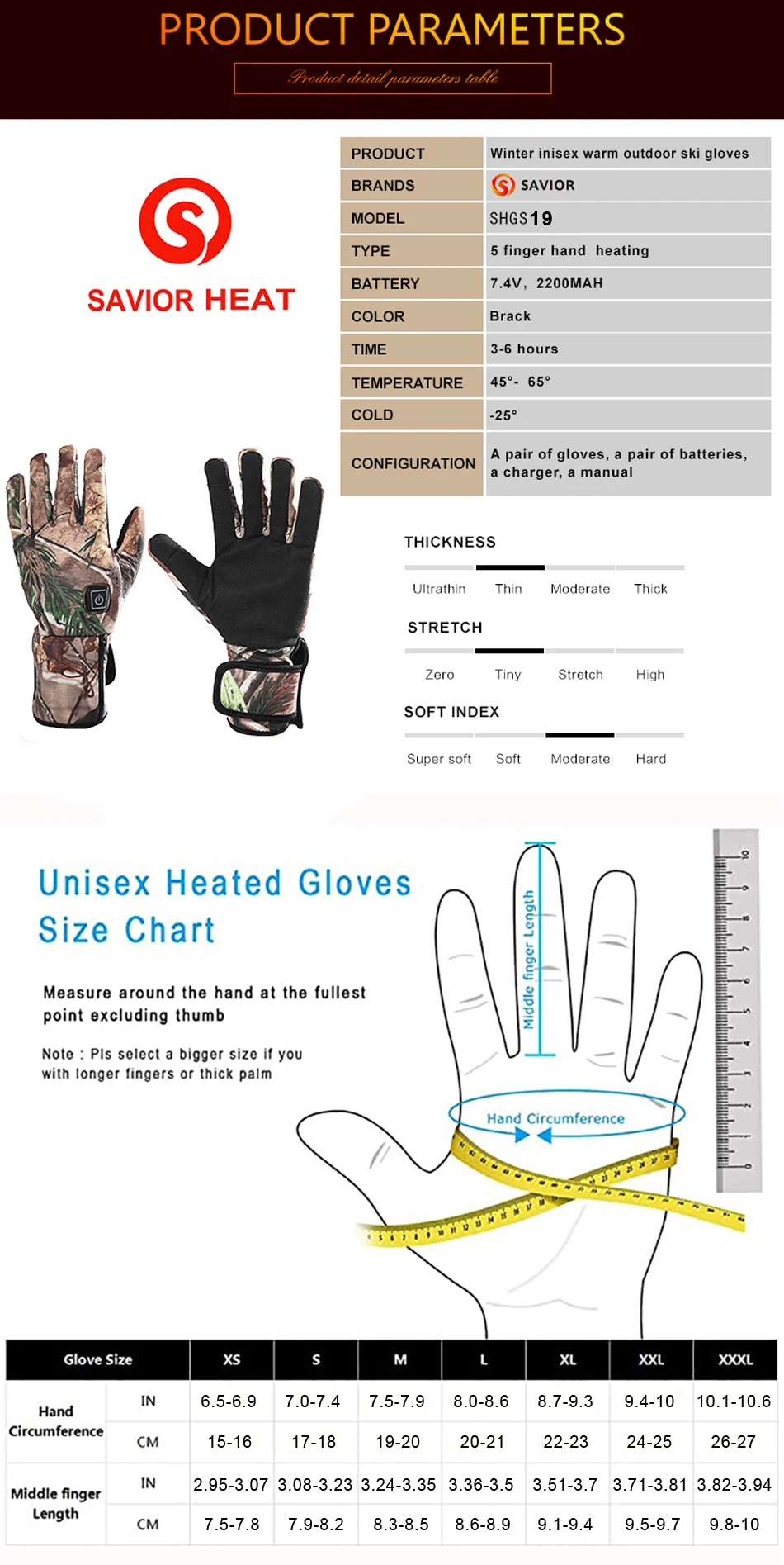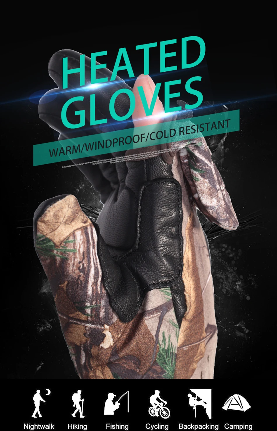 Зимние камуфляжные перчатки с перезаряжаемой батареей с подогревом для мужчин и женщин, мотоциклетные, лыжные, теплые перчатки для сноуборда