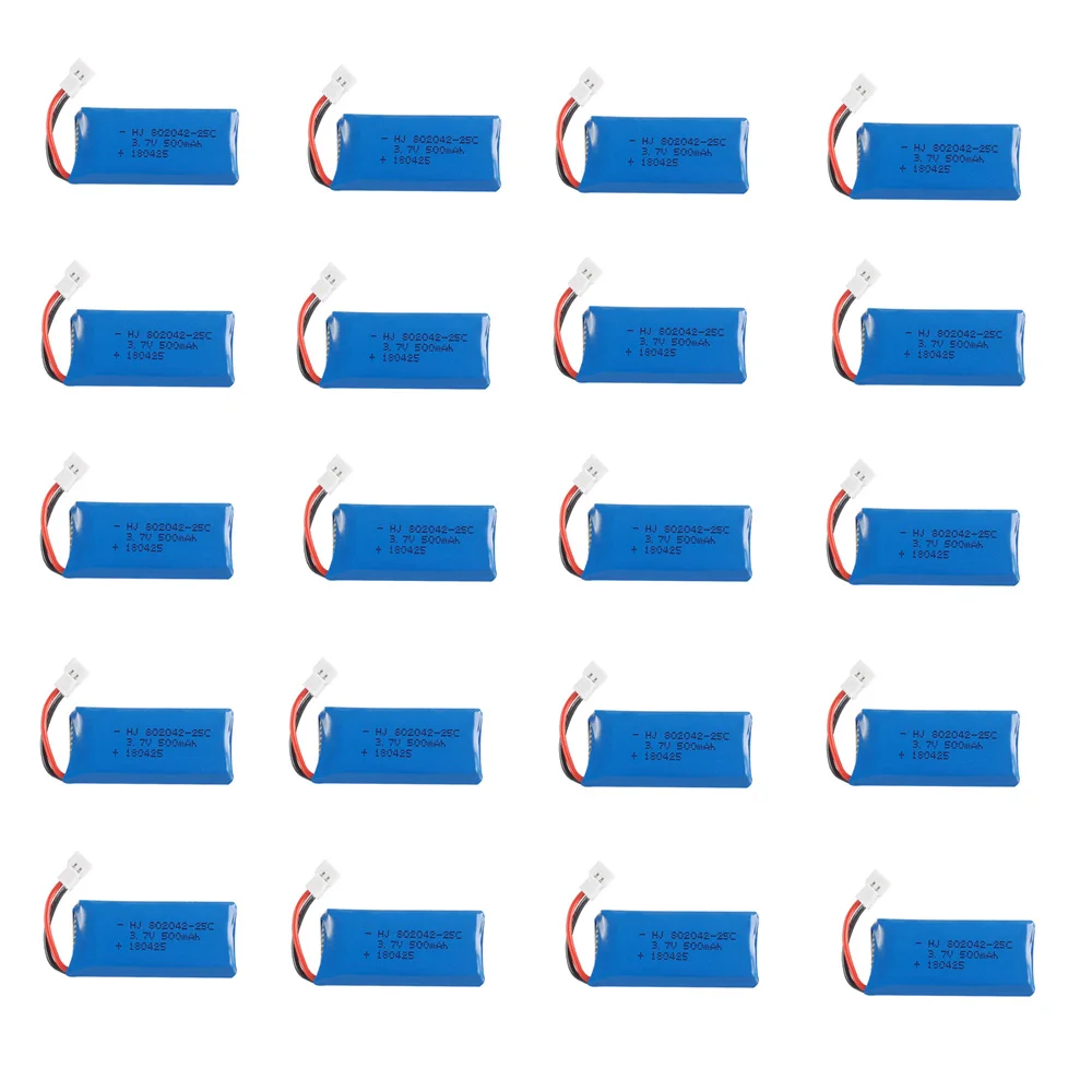 Аккумулятор Lipo 20 шт.компл. для Hubsan X4 H107 H107L H107C H107D Udi U942A U816 JXD385 Запчасти для радиоуправляемого квадрокоптера 3,7 в 500 мАч 25C 802042