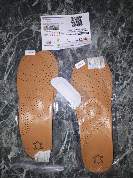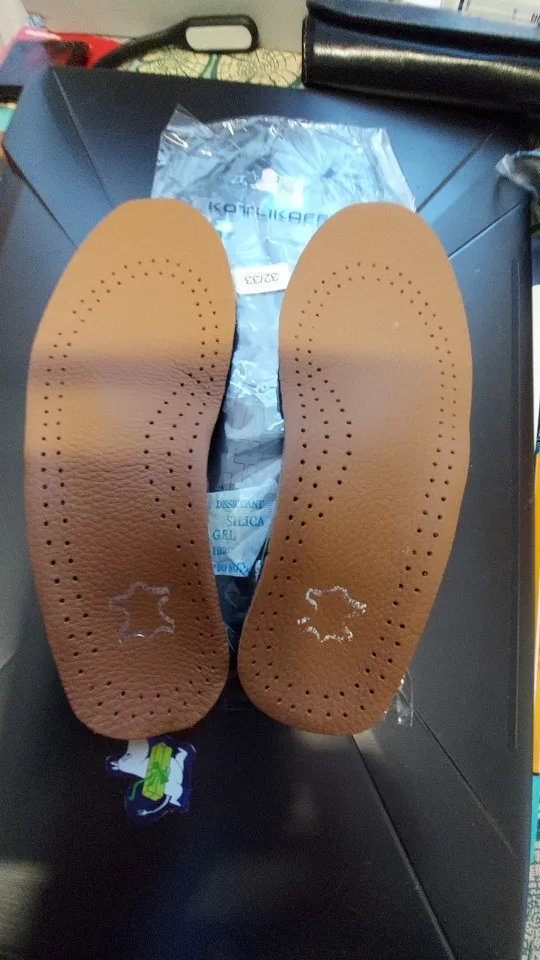 стельки приехали, весчь нормальная и своих денех стоит, хотяааа ……… конечно, это НЕ натуральная кожа (были бы они реально кожаные -- умножайте цену на 5-7-10), но это несущественно, пойдёт и искусственная; а вот что существенно -- размер -- это НЕ 45-46 (который я заказывал), стелька оказалась чуток короче даже моей стопы 44½р-ра (всю обувь такую ношу), а должна быть чуток длиннее, мне -- пойдёт, но уже под 45р-р -- будут откровенно короткие и неприменимые, или китайцы, как обычно, пишут ТОЛЬКО СВОИ размеры, а их 46й -- это как-раз русский 44½й, вот каг-то таг =)), учитывайте; доехало вовремя; продавцу -- !спасибо == xiexie! и удачи;