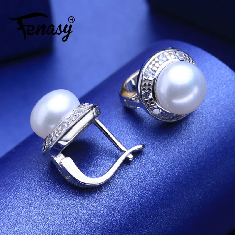 Женские серьги-клипсы FENASY из серебра 925 пробы с кубическим цирконием, свадебные ювелирные украшения с жемчугом, серьги из натурального пресноводного жемчуга