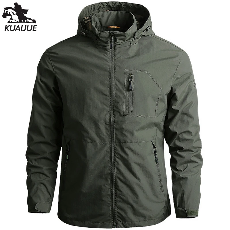 Куртка мужская демисезонная, однотонная, с капюшоном, ветровка