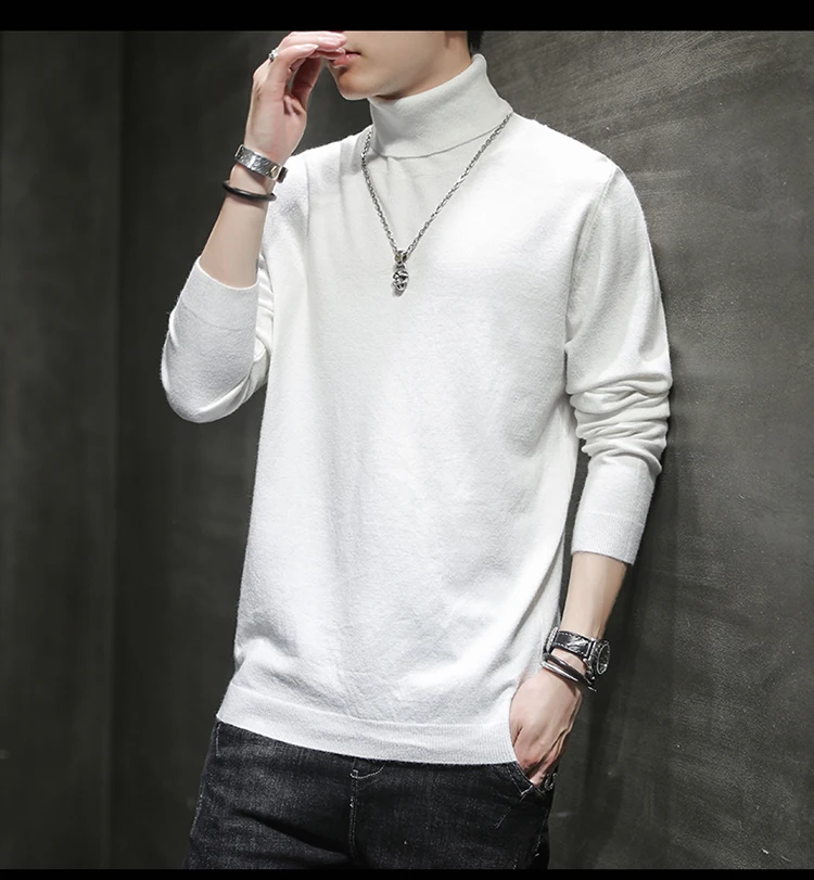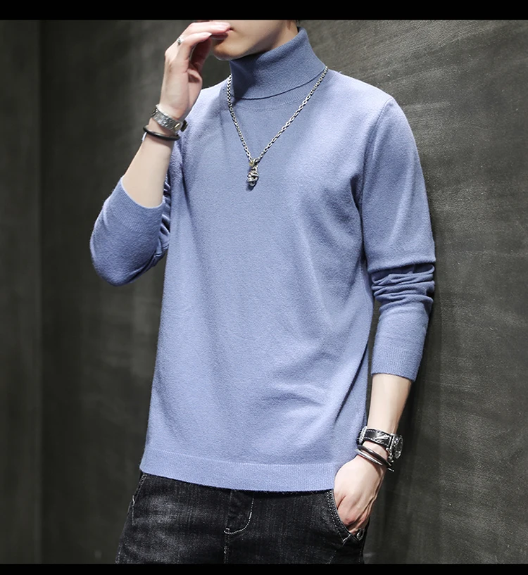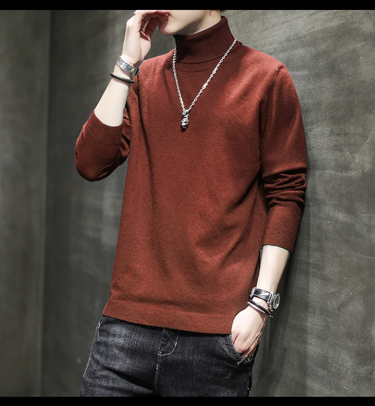 Свитер с высоким воротником, Молодежный свободный осенне-зимний 2020 новый стиль, однотонные повседневные теплые пуловеры для мужчин, Прямая поставка размера плюс M-5XL