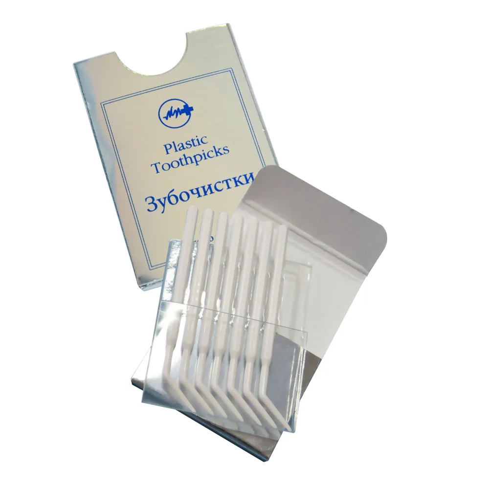 Пластиковые зубочистки Plastic Toothpicks это уникальный запатентованный набор, предназначен для ежедневного ухода за зубами. Оригинальная конструкция в виде стоматологического зонда позволяет легко и комфортно очищать межзубные пространства. В набор №5 входит 5 наборов по 7 штук уникальных зубочисток, это оптимальное количество зубочисток, которые упакованы в стильную, удобную коробочку. Такой набор можно всегда иметь под рукой дома, на работе, в сумочке, кармане, автомобиле. Декларация соответствия РОСС RU ПК12ДО4393.