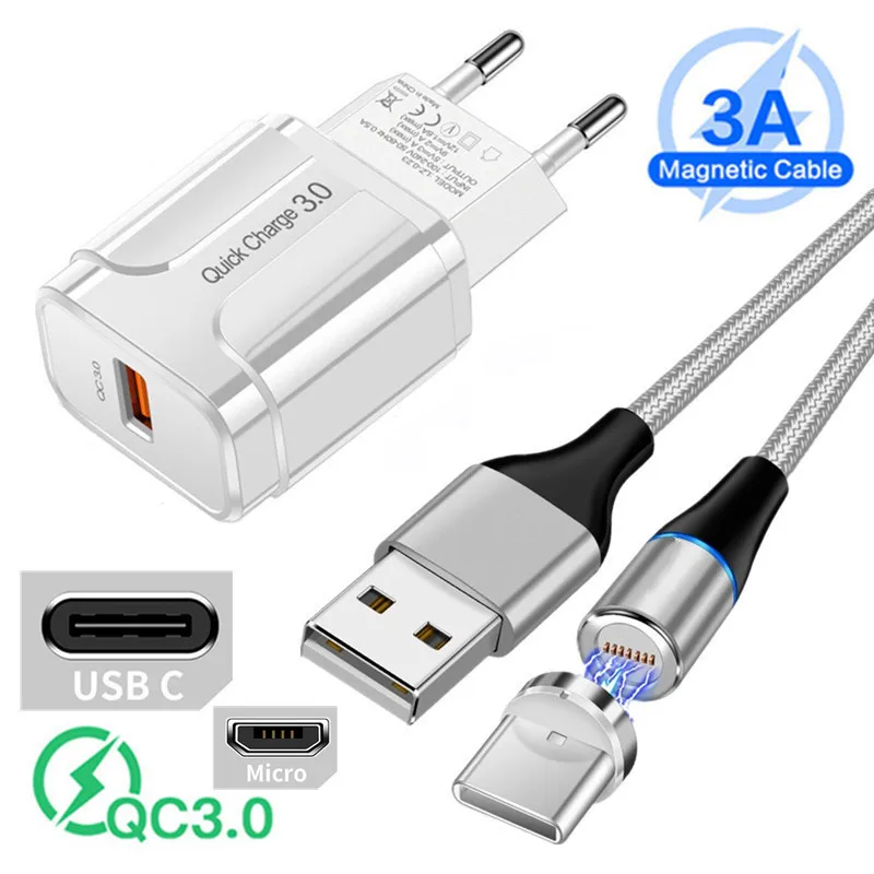 Устройство для быстрой зарядки POCO M3, USB-адаптер, 3 А, Магнитный зарядный кабель Type-C Micro для Samsung Galaxy A03, A52, S21, Xiaomi Redmi 10, Honor 9A