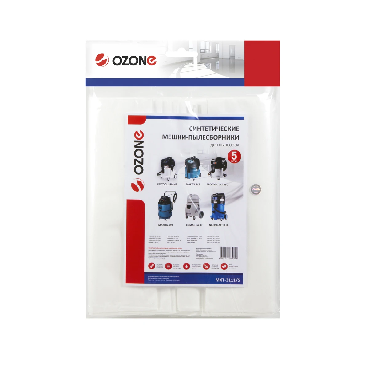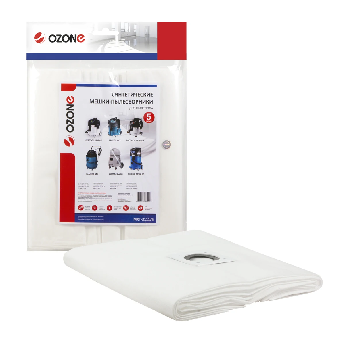 Мешки для пылесоса HILTI VC 60, MAKITA 449, NILFISK ATTIX 50, CHAO BAO, COMAC, HAMMER, HAMMERFLEX, HILTI, HUSQVARNA, FESTOOL, PROTOOL, 5 шт., синтетические, не боятся мокрой пыли, бренд: OZONE, арт. MXT-3111/5Подходит для:CHAO BAO: AC-603J-3, AC-602S, AC-602S-3, AC-602J, AC-602J-3, CB60-2J, CB60-3J COMAC: CA 80 FESTOOL: SRM 45 HAMMER: PIL50 HAMMERFLEX: PIL50 HILTI: VC 60 HUSQVARNA: DC 1400, DC 3000 MAKITA: 447LX, 449 NILFISK: ATTIX 560-31 XC, VL 500, ATTIX 550-2M, ATTIX 50-21, ATTIX 560-21 XC MOBIL DK, ATTIX 550-21, ATTIX 50-2M PC, ATTIX 550-01, ATTIX 50-01 PC, ATTIX 550-11 MOBIL PROTOOL: VCP 450 E-L REDVERG: RD-VC7260 THOMAS: INOX 45 S VIRUTEX: AS282KЕсли вы не уверены в выборе - просим связаться с нами.