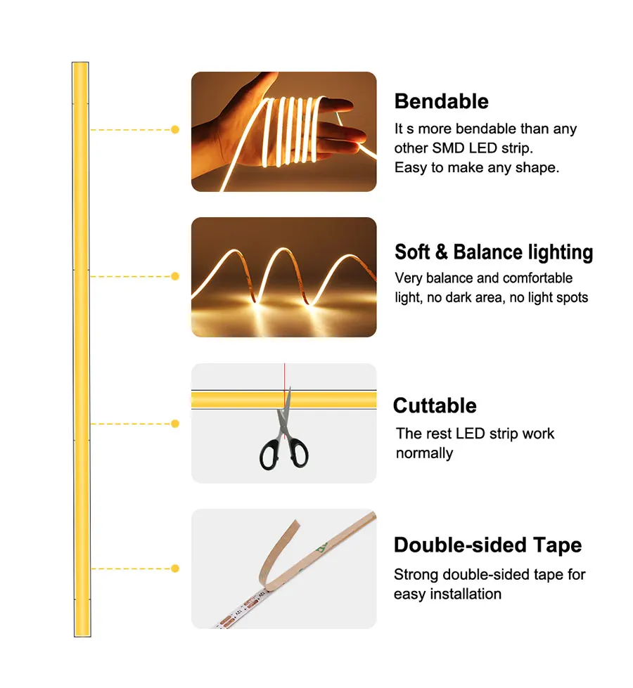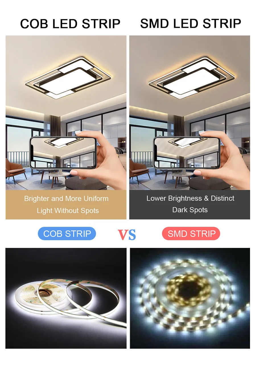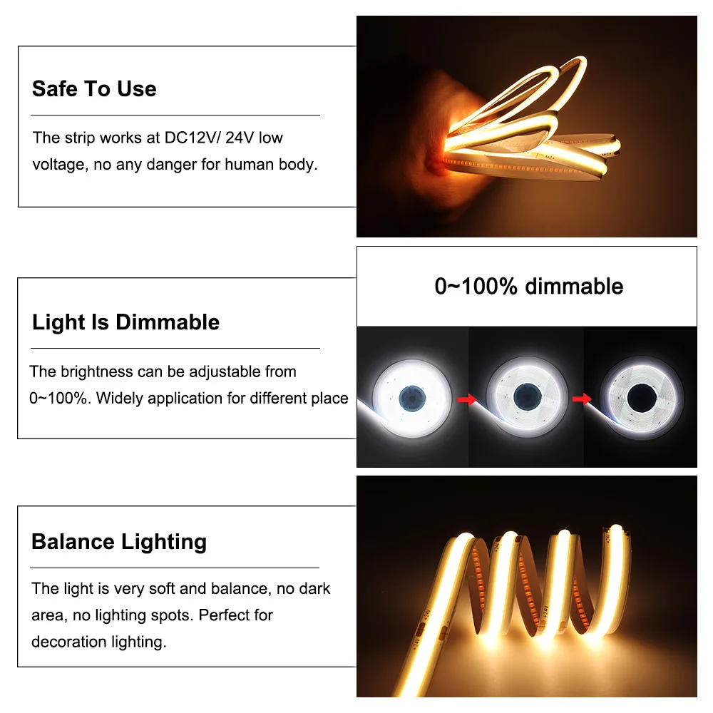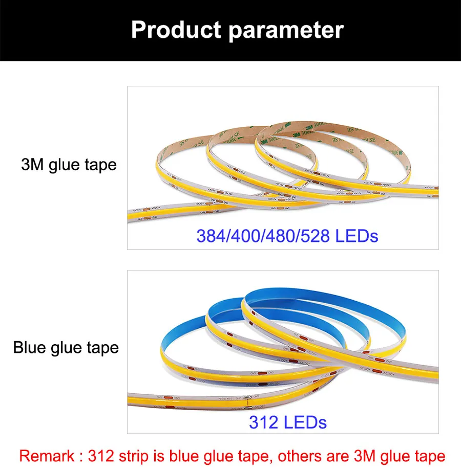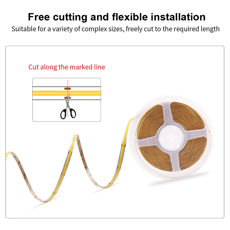 5 метров 12 В 24 В COB Светодиодная лента 3000K 4000K 6000K Теплый белый цвет 384 480 528 светодиодов 3 мм 5 мм 8 мм 10 мм Ширина CRI 90 FCOB Светодиодная лента Кухня Дом Украшение комнаты Освещение 5M