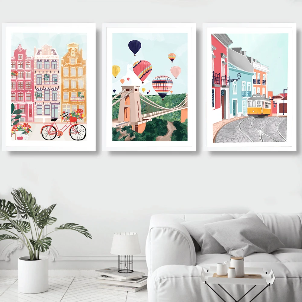 Скандинавский Париж, Лондон, Берлин, Санторини, дизайн, постер для путешествий, Настенная живопись на холсте, Hd печать, модульные картины, декор для гостиной
