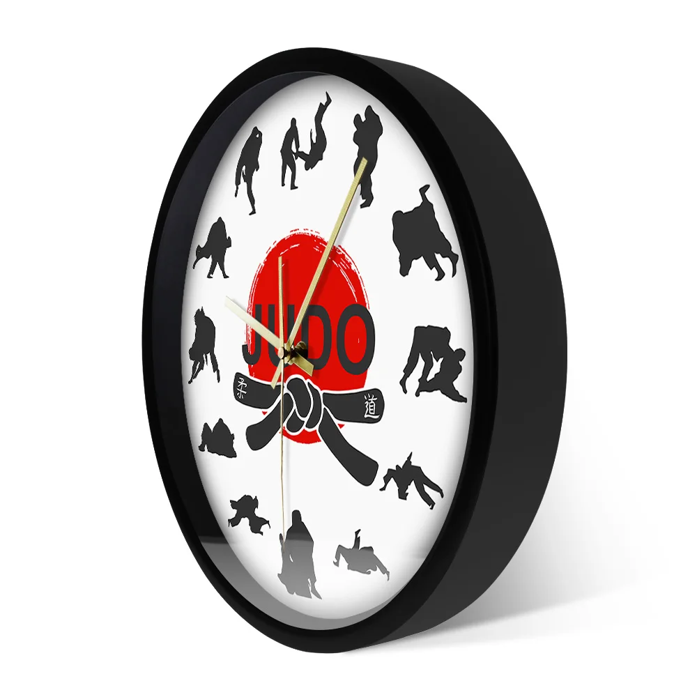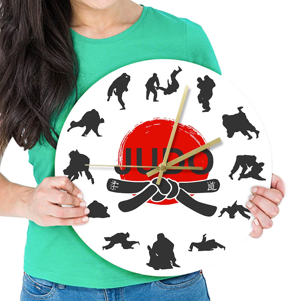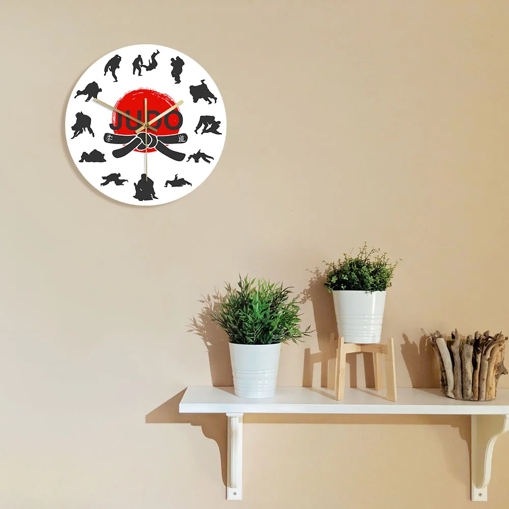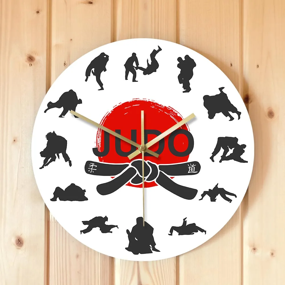 Японские боевые искусства дзюдо настенные часы для мальчиков комнаты джиу-джитсу спортивные боевые искусства декор висит тихий не тикать часы настенные часы