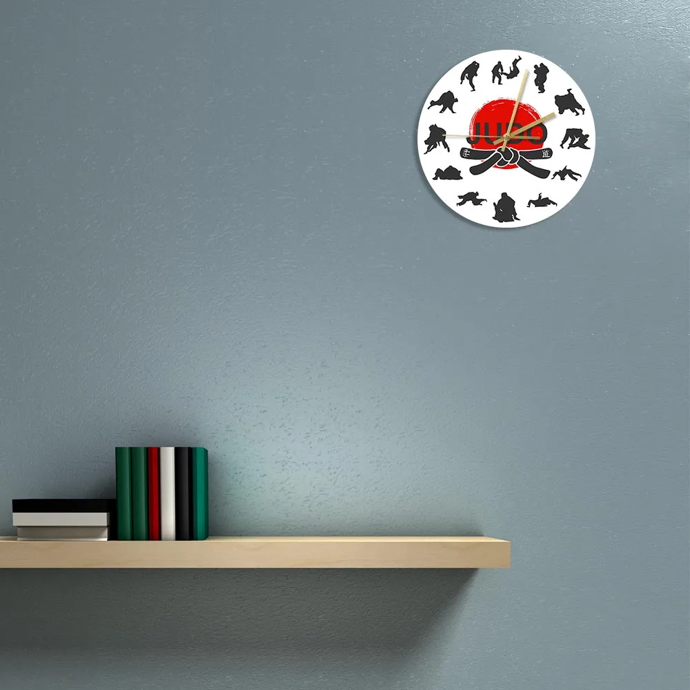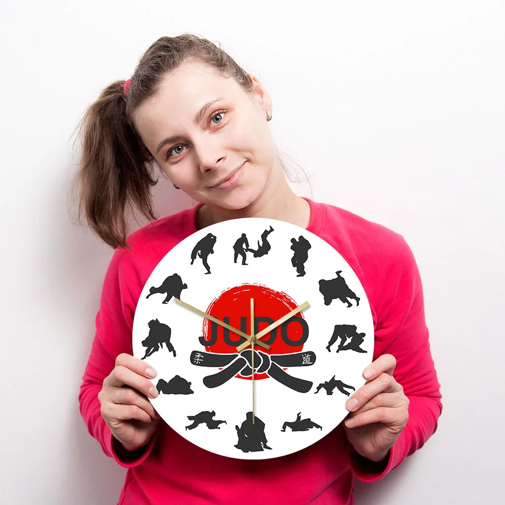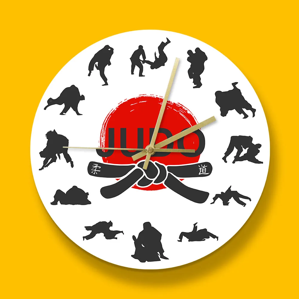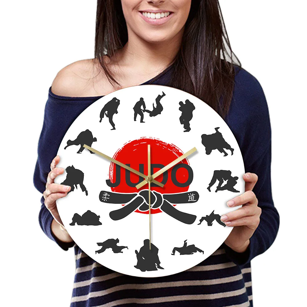 Японские боевые искусства дзюдо настенные часы для мальчиков комнаты джиу-джитсу спортивные боевые искусства декор висит тихий не тикать часы настенные часы