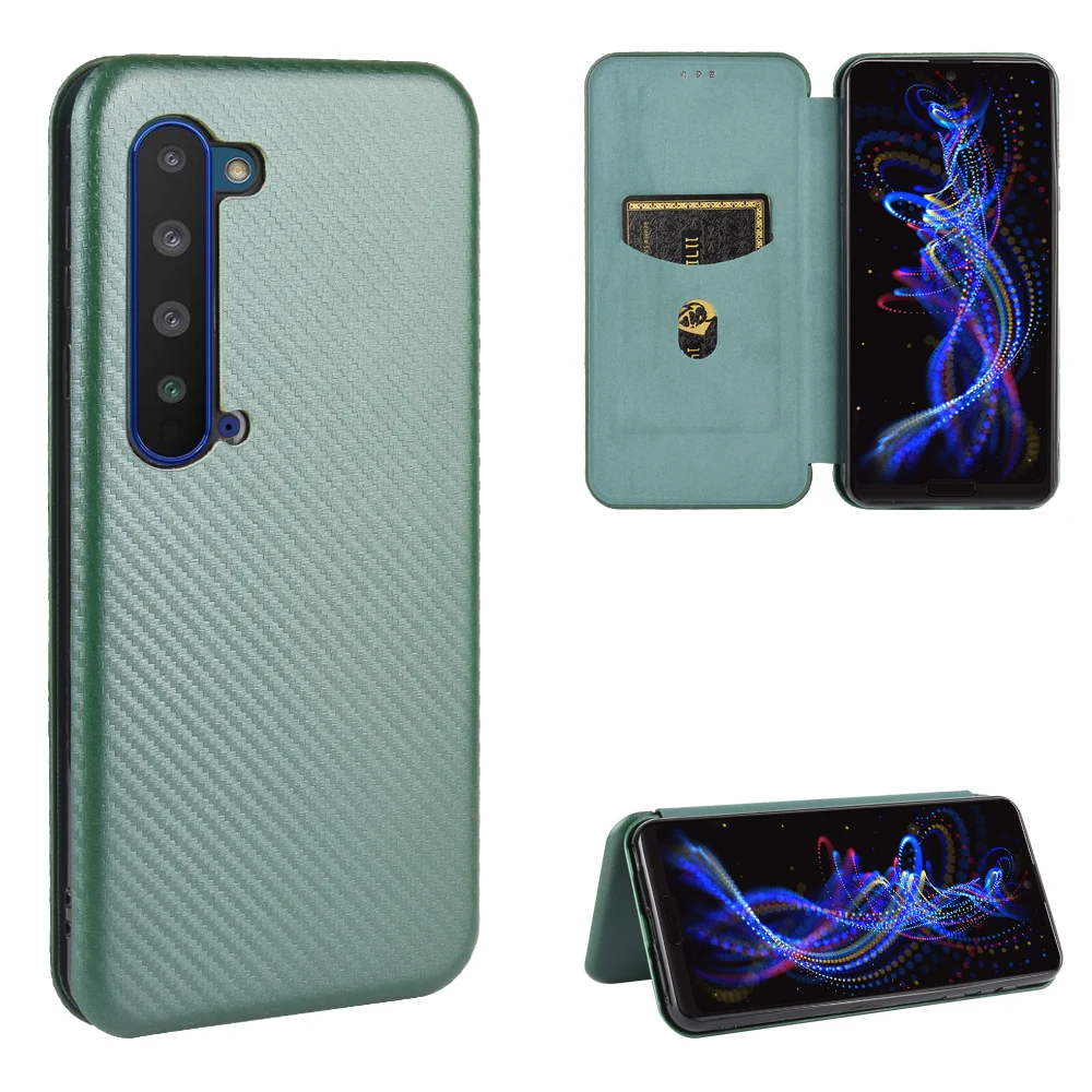 На Sharp Aquos R5G углеродного волокна флип чехол для Sharp Aquos R5G чехол с подставкой и отделением для карт класса люкс высокого качества чехол, Fundas чехол Fundas