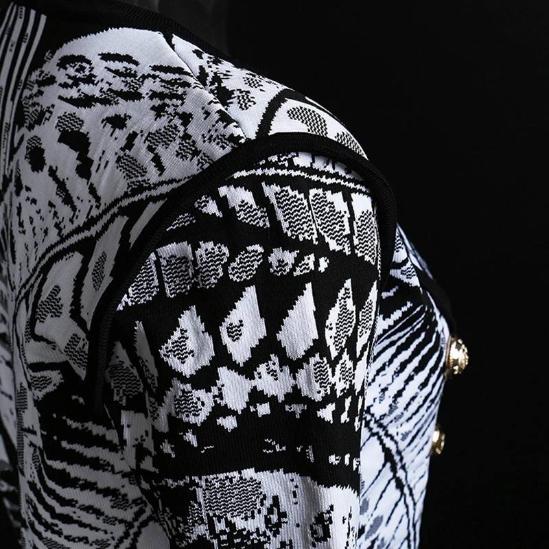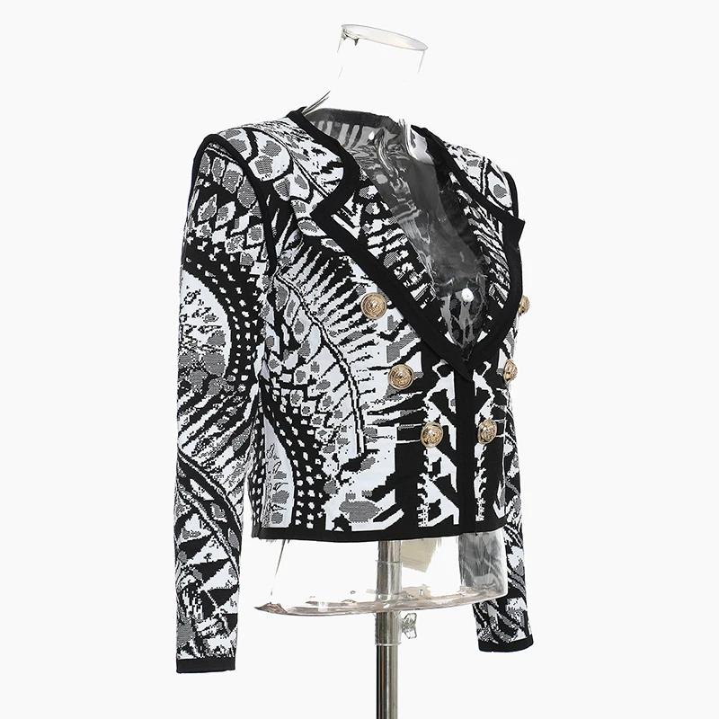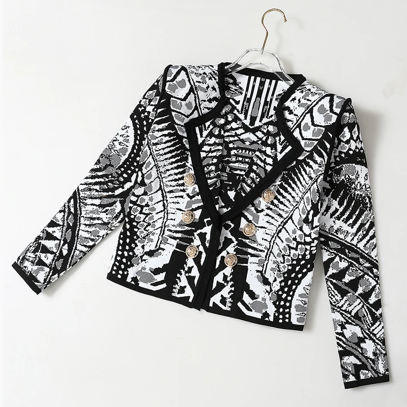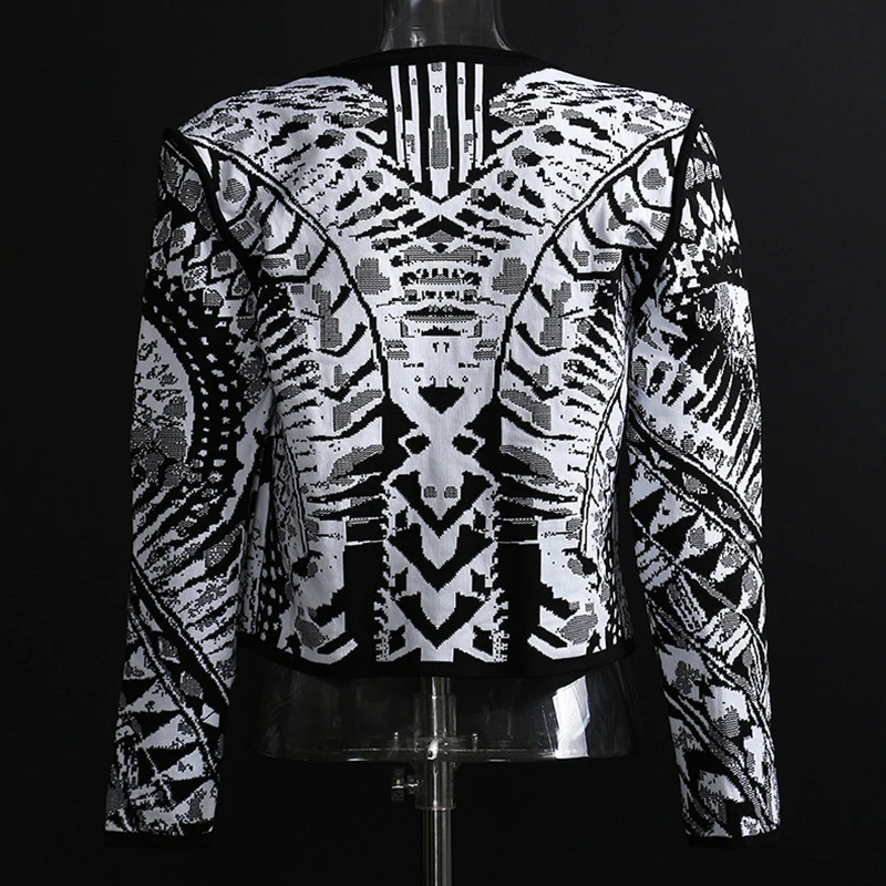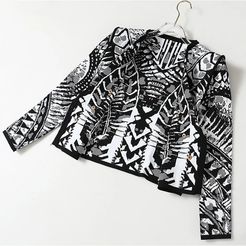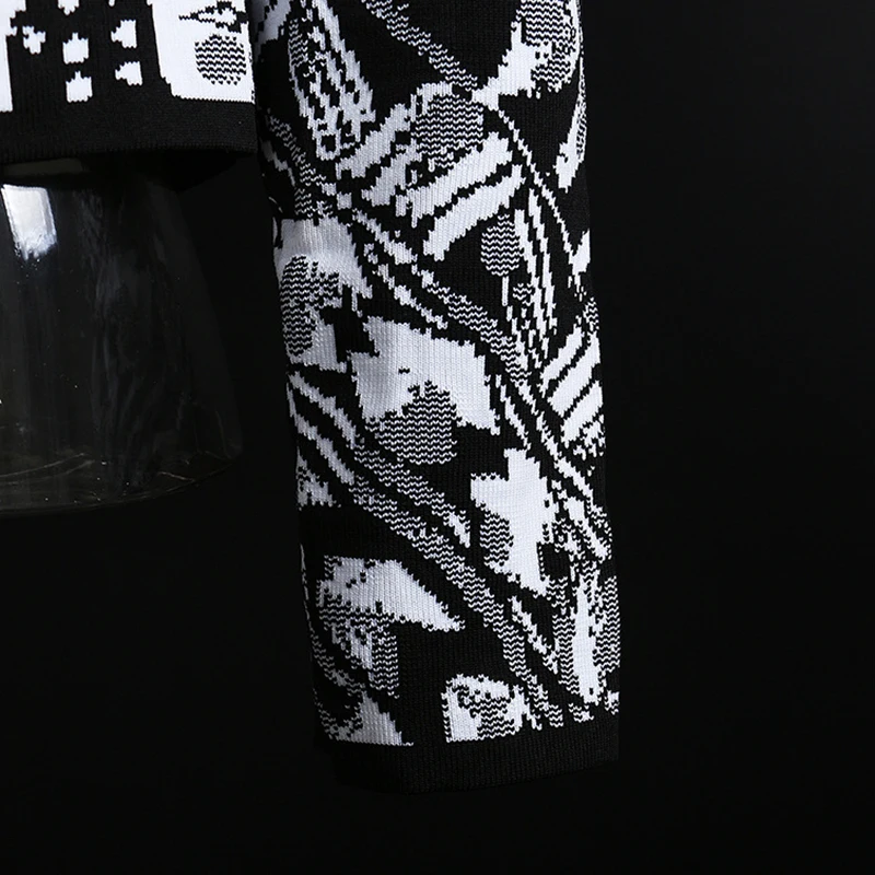 Женский короткий кардиган TWOTWINSTYLE, осенний, черный, белый, с V-образным вырезом, длинными рукавами, с принтом, 2020