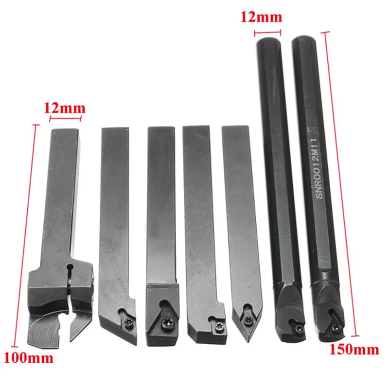 Набор инструментов для токарного станка с хвостовиком 12 мм, 7 шт. + 7 твердосплавных вставок + 7 гаечных ключей