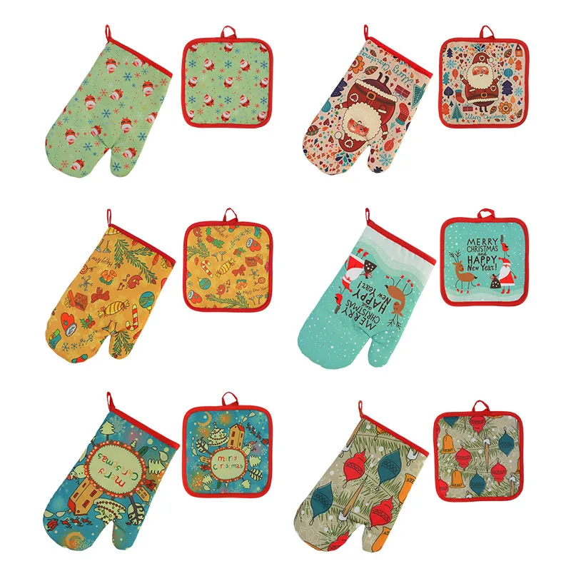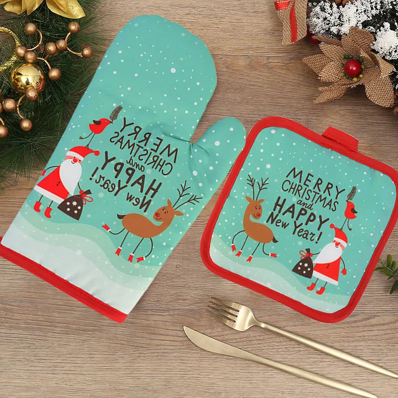 2 шт рождественские изоляционные перчатки pothholder Pad Духовка Варежки анти-горячие перчатки для барбекю микроволновая печь Рождественское украшение для дома кухонные инструменты для выпечки
