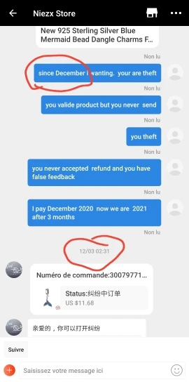 Этот продавец никогда не посылал товар, статус сказал, что товар дома продавца и никогда не сойдет с Китая. Я покупаю в августе 2020 года saler никогда не отвечаю на мое сообщение, я открываю спор, mars 2021 alyepress оплачивает, но я оставляю деньги алиэкспресс. Этот продавец никогда и никогда не отвечаю на мое сообщение. Нажмите «да», чтобы помочь покупателю⬇②