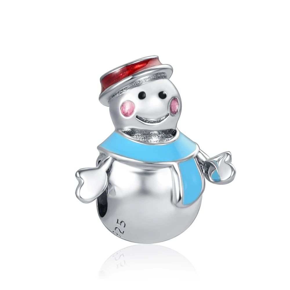 Новый Рождественский Снеговик Снежинка Кристалл синий Шарм подходят оригинальные шармы Pandora Серебро 925 бусины браслет DIY Женские Ювелирные изделия Подарки