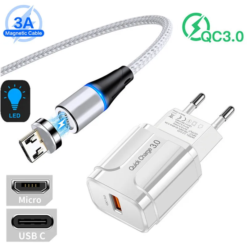 Быстрое зарядное устройство QC 3,0 USB, Магнитный зарядный кабель т...