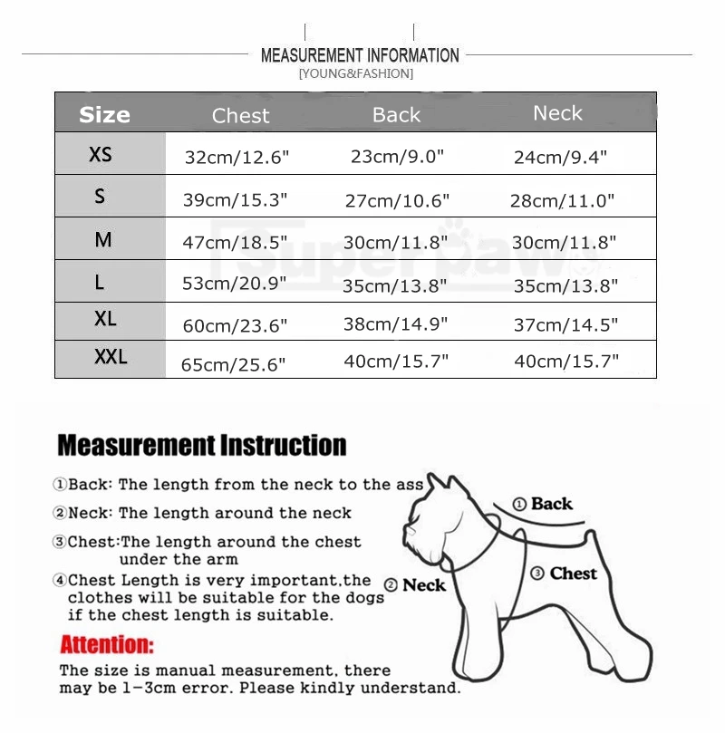 2. Для двух ног, пожалуйста, обратите внимание на обхват груди, и для четырех ног, должны соответствовать обхвату груди и длине спины.