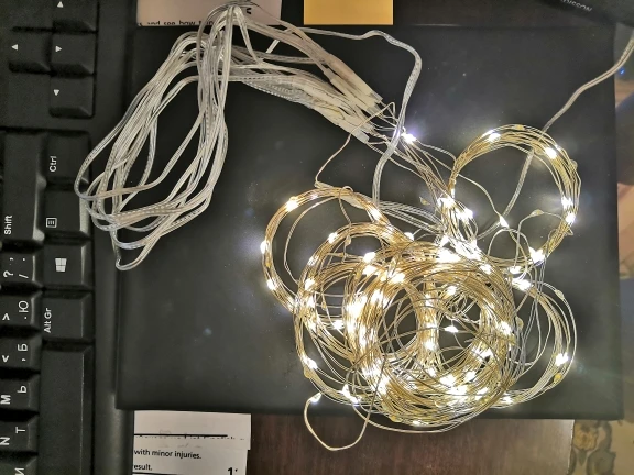 Гирлянда пришла быстро. Нити идущие к светодиодам ну оооочень тонкие, прям с волос толщиной. Но все работает. Продавца рекомендую. Fast delivery. Very thin lines but work good. The seller is recommended.