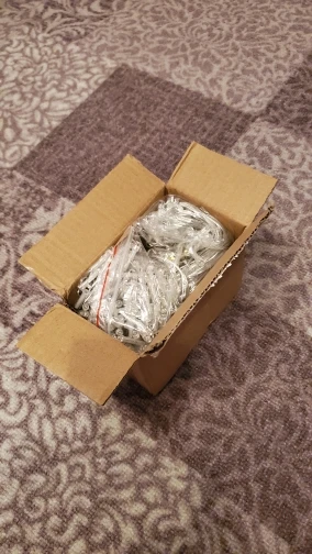 10 декабря заказал и оплатил товар, а 29 декабря забрал посылку в своём почтовом отделении. Неделю посылка пролежала после растаможки в Казани, видимо терялась она у них... Вес посылки брутто всего 88 грамм. Распаковал, вставил батарейку CR2025 в пульт, была в загажнике. Из Китая не отправляются устройства в комплекте с батарейками. Заказывал размер 3 м × 2м. 10 ниток длиной 2 м через 30 см расположены нити. Цвет тёплый белый. Светодиоды SMD типоразмер 0602 или даже меньше залиты каплей матового клея. Питание от USB зарядки, контроллер встроен в USB разъём. Режимы мерцания, управление и цвет нам очень понравились. На фото всё видно и должно быть понятно. Продавца и товар рекомендую. Продавец на вопросы отвечает. Планирую заказать ещё гирлянду 3м ×3м. Потребляемая мощность менее 3,5 Вт.