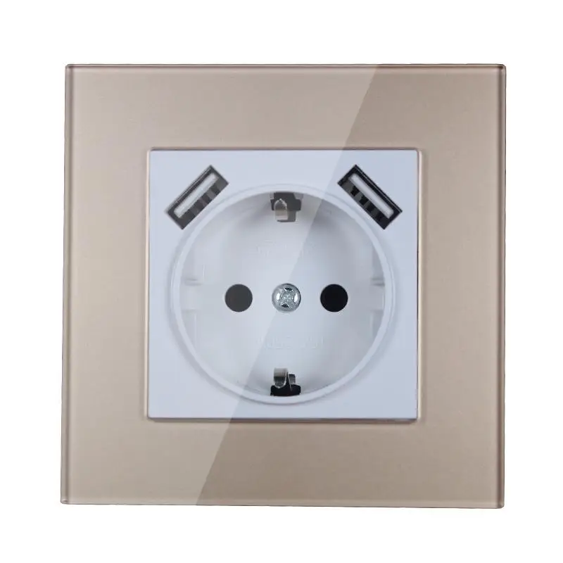 Немецкий стандарт Европейский стандарт 5В 2а USB настенная розетка акриловая Золотая